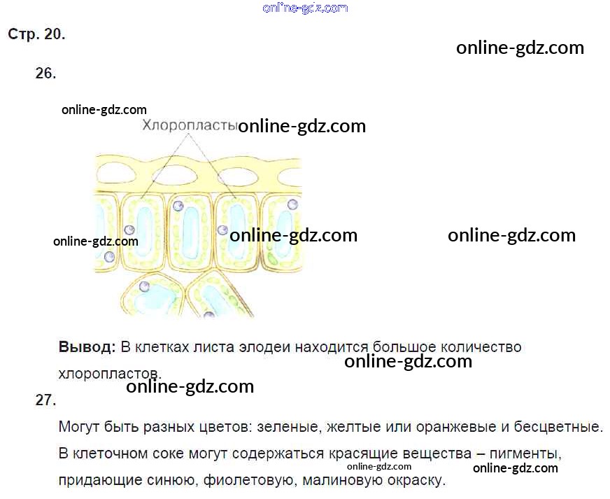 Готовые домашние задания по Биологии за 5 класс Рабочая тетрадь Пасечник Вертикаль 2015 - § 7. Строение клетки стр. 20