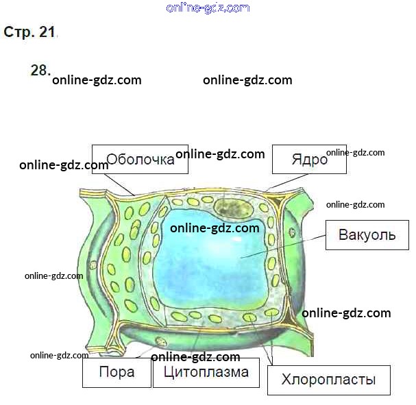 Готовые домашние задания по Биологии за 5 класс Рабочая тетрадь Пасечник Вертикаль 2015 - § 7. Строение клетки стр. 21