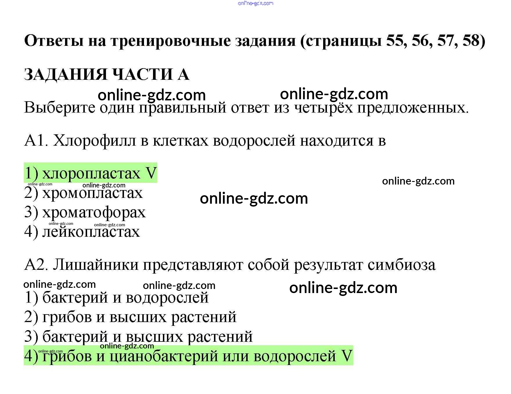 Готовые домашние задания по Биологии за 5 класс Рабочая тетрадь Пасечник Вертикаль 2015 - Тренировочные задания стр.55