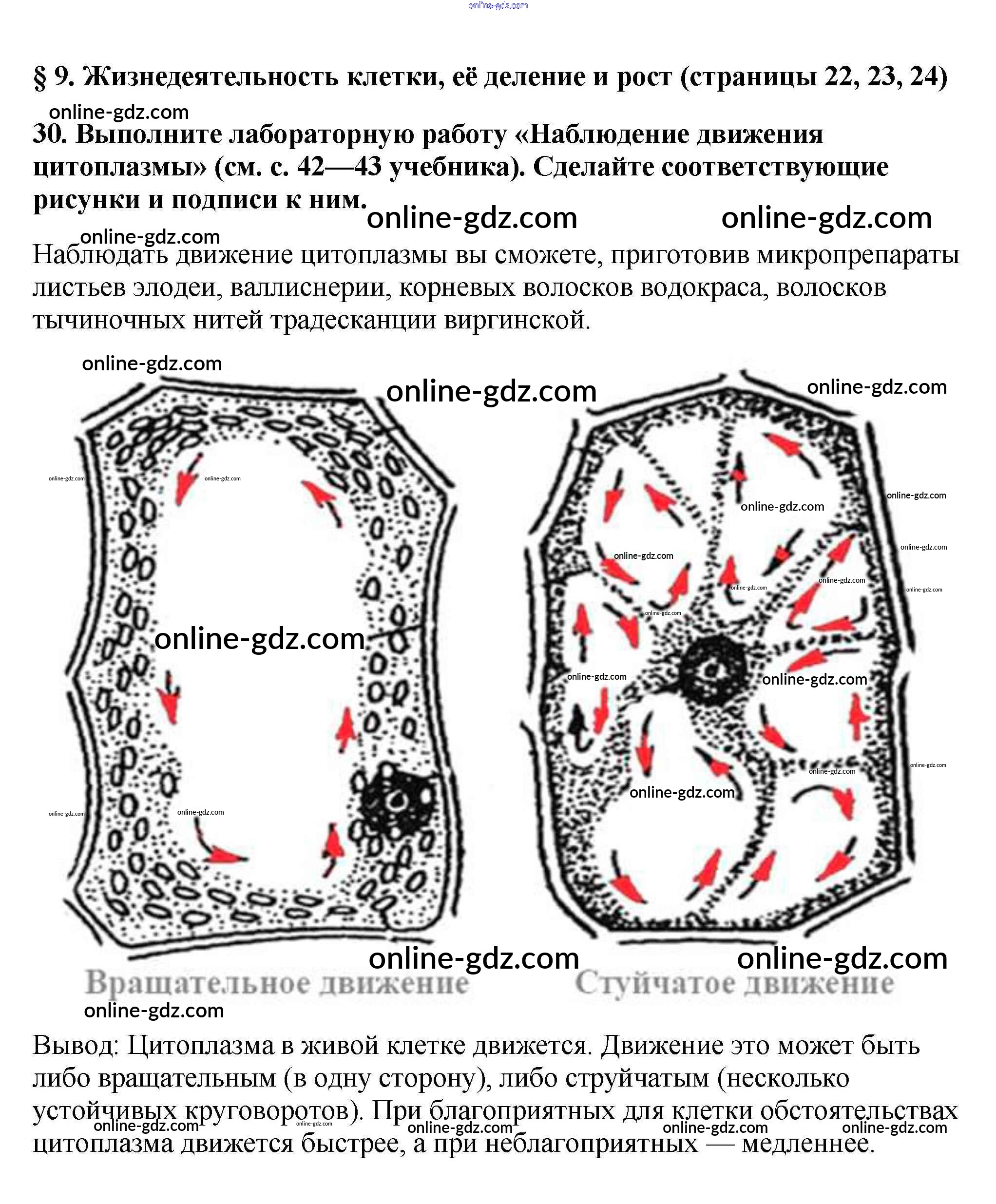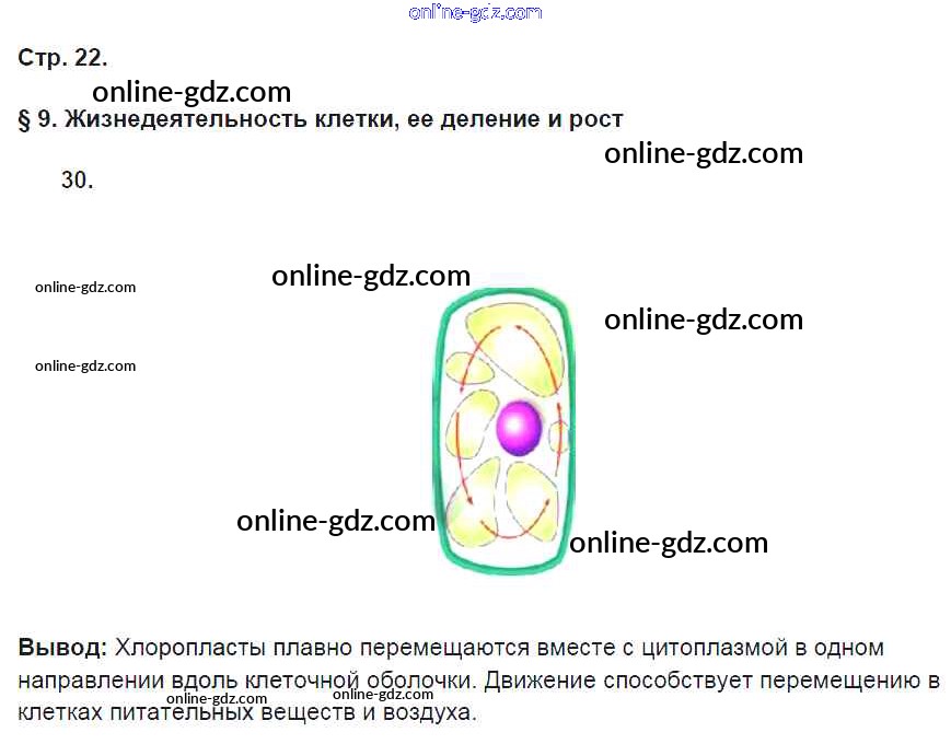 Готовые домашние задания по Биологии за 5 класс Рабочая тетрадь Пасечник Вертикаль 2015 - § 9. Жизнедеятельность клетки, её деление и рост стр. 22