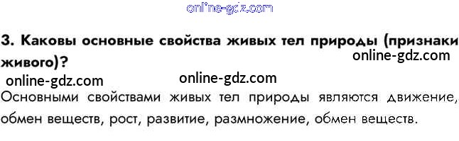 Готовые домашние задания по Биологии за 5 класс Учебник Пасечник Линейный курс 2021 - Вопросы §1. Живая и неживая природа — единое целое 3
