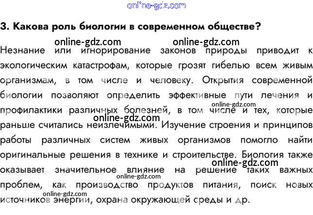 Готовые домашние задания по Биологии за 5 класс Учебник Пасечник Линейный курс 2021 - Вопросы §2. Биология — система наук о живой природе 3