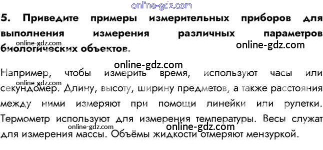 Готовые домашние задания по Биологии за 5 класс Учебник Пасечник Линейный курс 2021 - Вопросы §4. Измерения в биологических исследованиях 5