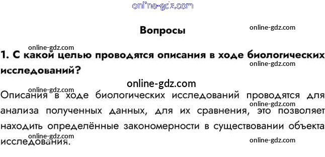 Готовые домашние задания по Биологии за 5 класс Учебник Пасечник Линейный курс 2021 - Вопросы §5. Описание результатов исследований 1