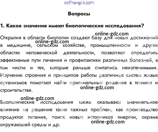 Готовые домашние задания по Биологии за 5 класс Учебник Пасечник Линейный курс 2021 - Вопросы §6. Эксперимент в биологии 1
