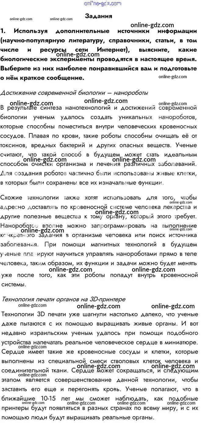 Готовые домашние задания по Биологии за 5 класс Учебник Пасечник Линейный курс 2021 - Задания §6. Эксперимент в биологии 1