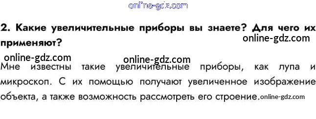 Готовые домашние задания по Биологии за 5 класс Учебник Пасечник Линейный курс 2021 - Вопросы в начале параграфа §7. Увеличительные приборы 2