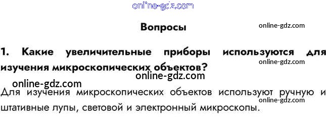 Готовые домашние задания по Биологии за 5 класс Учебник Пасечник Линейный курс 2021 - Вопросы §7. Увеличительные приборы 1