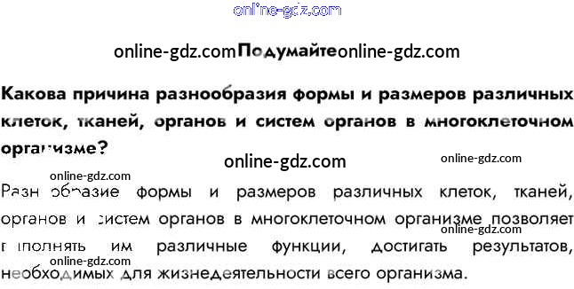 Готовые домашние задания по Биологии за 5 класс Учебник Пасечник Линейный курс 2021 - Подумайте §9. Организм — единое целое 1