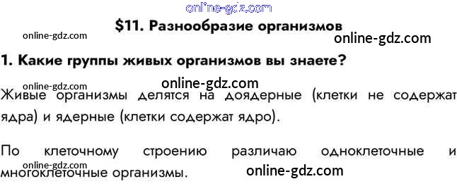 Готовые домашние задания по Биологии за 5 класс Учебник Пасечник Линейный курс 2021 - Вопросы в начале параграфа §11. Разнообразие организмов 1