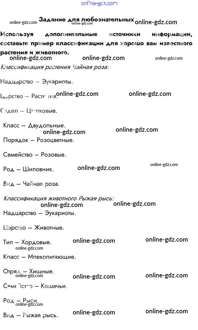 Готовые домашние задания по Биологии за 5 класс Учебник Пасечник Линейный курс 2021 - Задание для любознательных §11. Разнообразие организмов 1