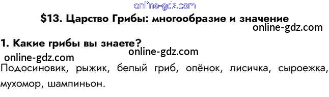 Готовые домашние задания по Биологии за 5 класс Учебник Пасечник Линейный курс 2021 - Вопросы в начале параграфа §13. Царство Грибы: многообразие и значение 1