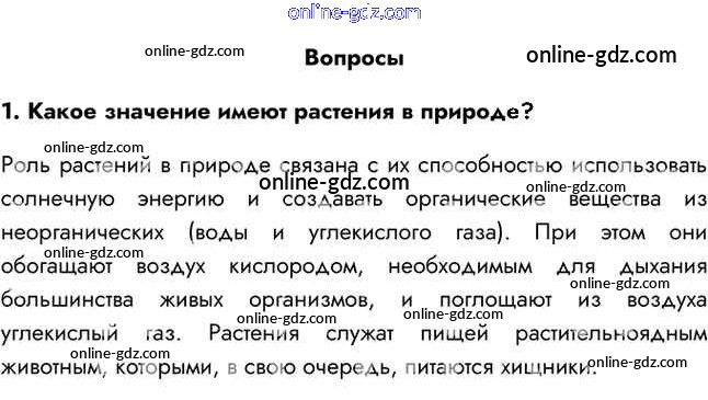 Готовые домашние задания по Биологии за 5 класс Учебник Пасечник Линейный курс 2021 - Вопросы §14. Царство Растения: многообразие и значение 1