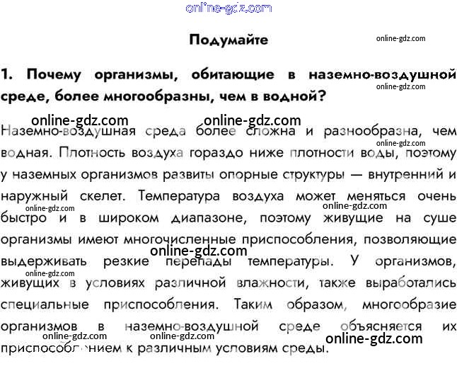 Готовые домашние задания по Биологии за 5 класс Учебник Пасечник Линейный курс 2021 - Подумайте §16. Среды обитания организмов 1