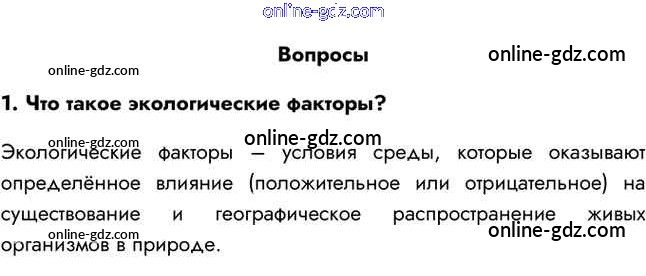 Готовые домашние задания по Биологии за 5 класс Учебник Пасечник Линейный курс 2021 - Вопросы §17. Экологические факторы и их влияние на живые организмы 1