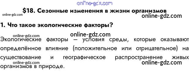 Готовые домашние задания по Биологии за 5 класс Учебник Пасечник Линейный курс 2021 - Вопросы в начале параграфа §18. Сезонные изменения в жизни организмов 1