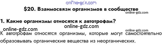 Готовые домашние задания по Биологии за 5 класс Учебник Пасечник Линейный курс 2021 - Вопросы в начале параграфа §20. Взаимосвязи организмов в сообществе 1