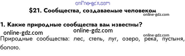 Готовые домашние задания по Биологии за 5 класс Учебник Пасечник Линейный курс 2021 - Вопросы в начале параграфа §21. Сообщества, создаваемые человеком 1