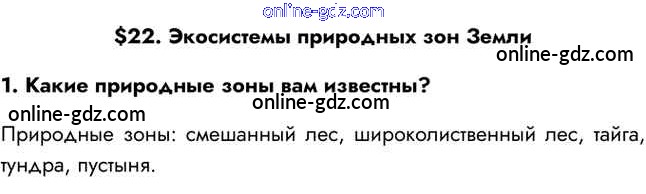 Готовые домашние задания по Биологии за 5 класс Учебник Пасечник Линейный курс 2021 - Вопросы в начале параграфа §22. Экосистемы природных зон Земли 1