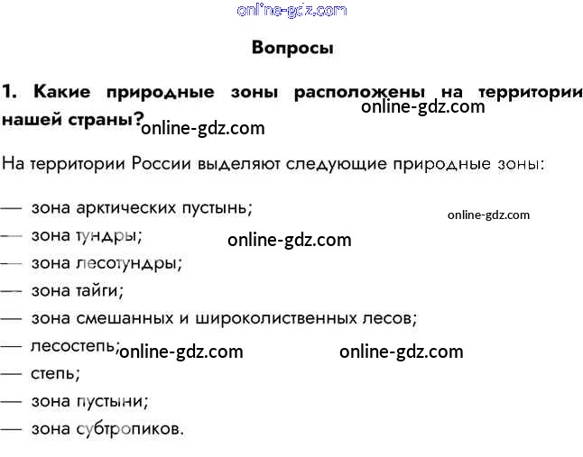 Готовые домашние задания по Биологии за 5 класс Учебник Пасечник Линейный курс 2021 - Вопросы §23. Природные зоны России 1