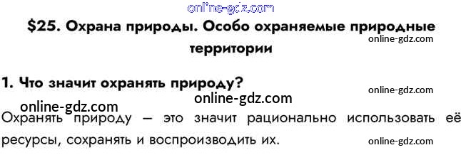 Готовые домашние задания по Биологии за 5 класс Учебник Пасечник Линейный курс 2021 - Вопросы в начале параграфа §25. Охрана природы. Особо охраняемые природные территории 1