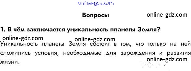 Готовые домашние задания по Биологии за 5 класс Учебник Пасечник Линейный курс 2021 - Вопросы §26. Планета Земля — наш общий дом 1