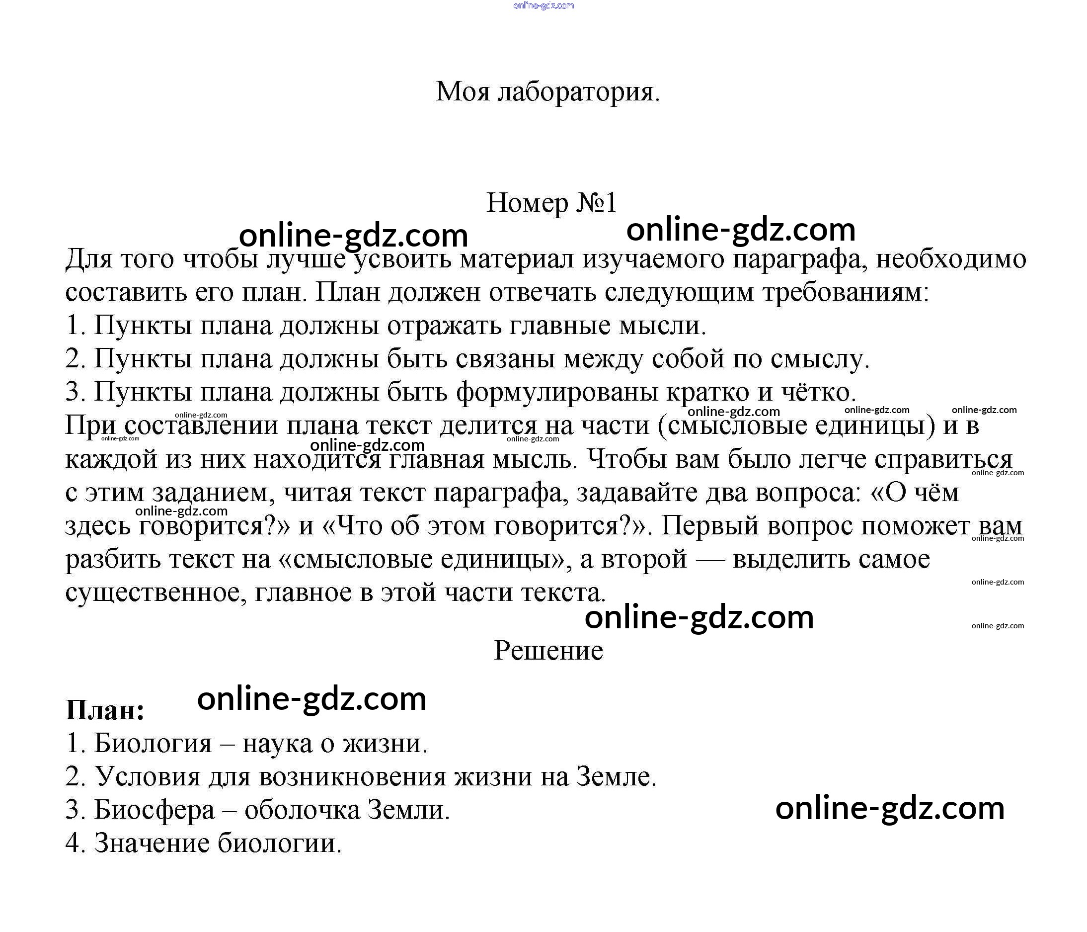 Готовые домашние задания по Биологии за 5, 6 класс Учебник Пасечник, Суматохин Линия жизни 2020 - Моя лаборатория §1. Биология — наука о живой природе 1