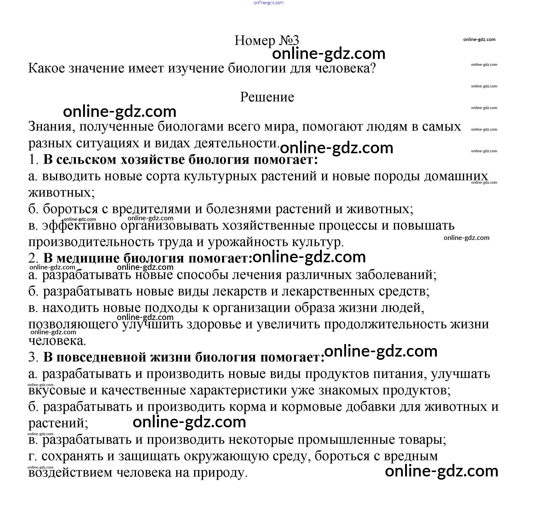 Готовые домашние задания по Биологии за 5, 6 класс Учебник Пасечник, Суматохин Линия жизни 2020 - Вопросы §1. Биология — наука о живой природе 3