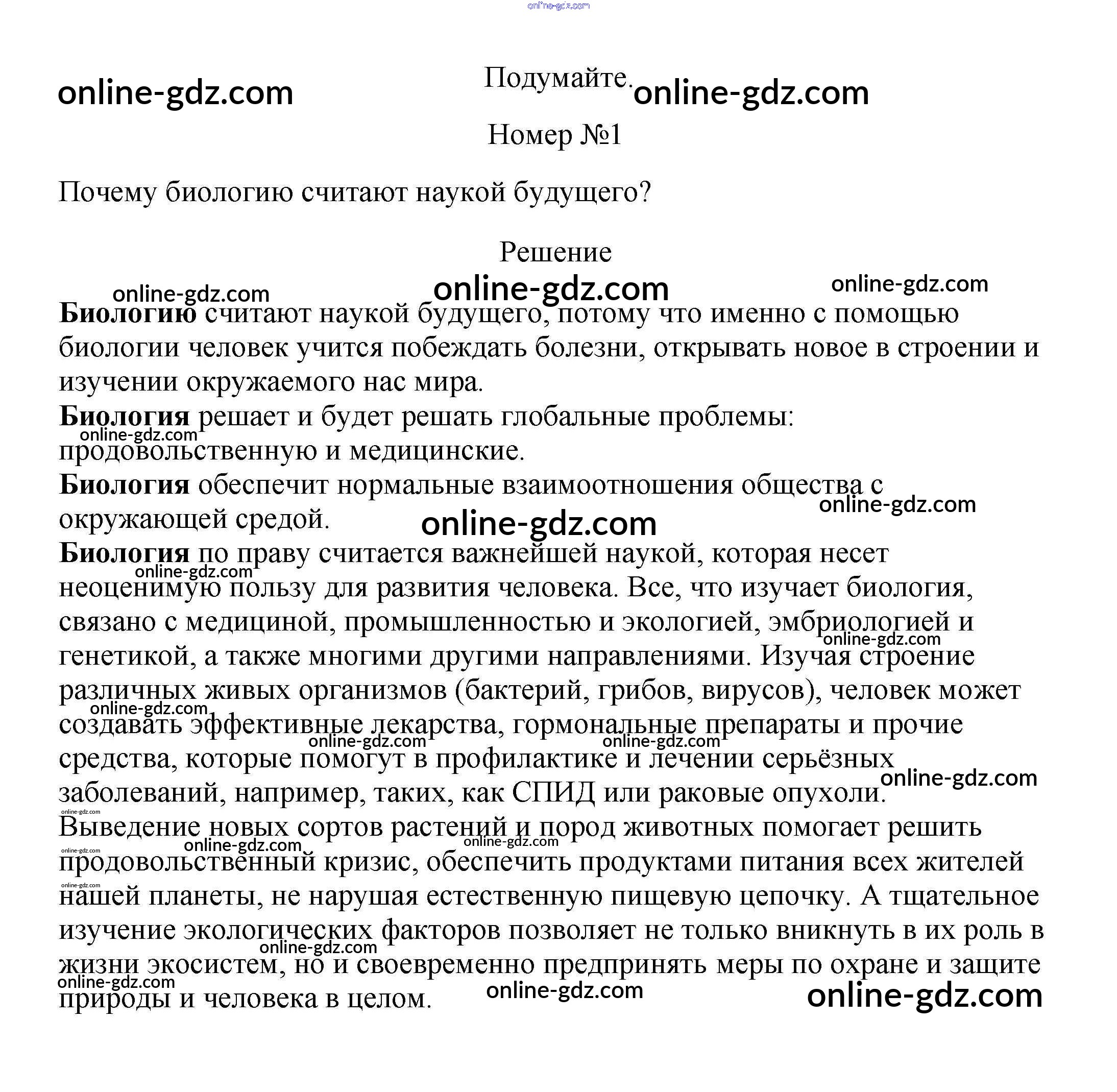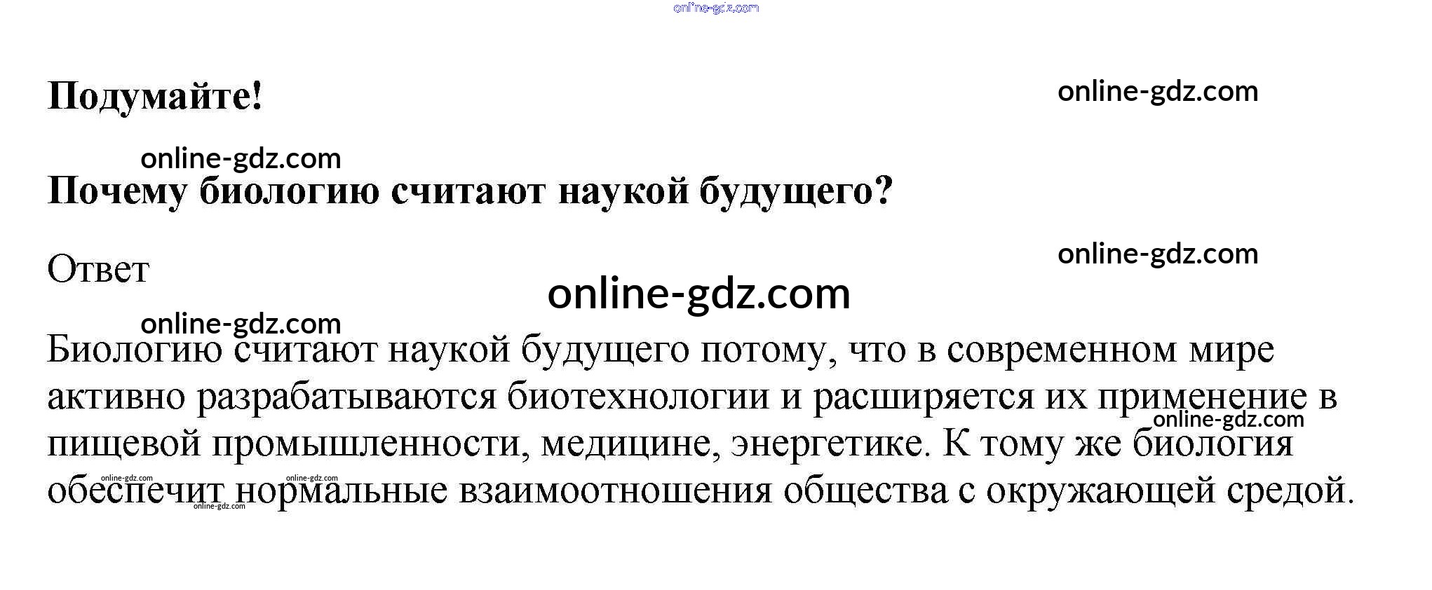 Готовые домашние задания по Биологии за 5, 6 класс Учебник Пасечник, Суматохин Линия жизни 2020 - Подумайте §1. Биология — наука о живой природе 1