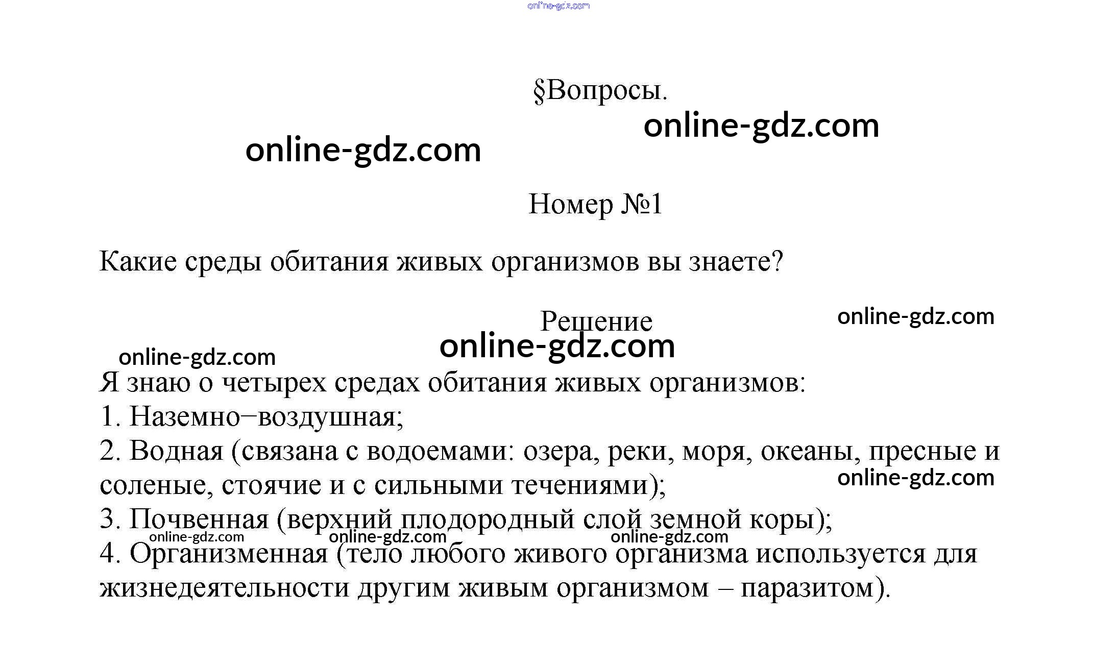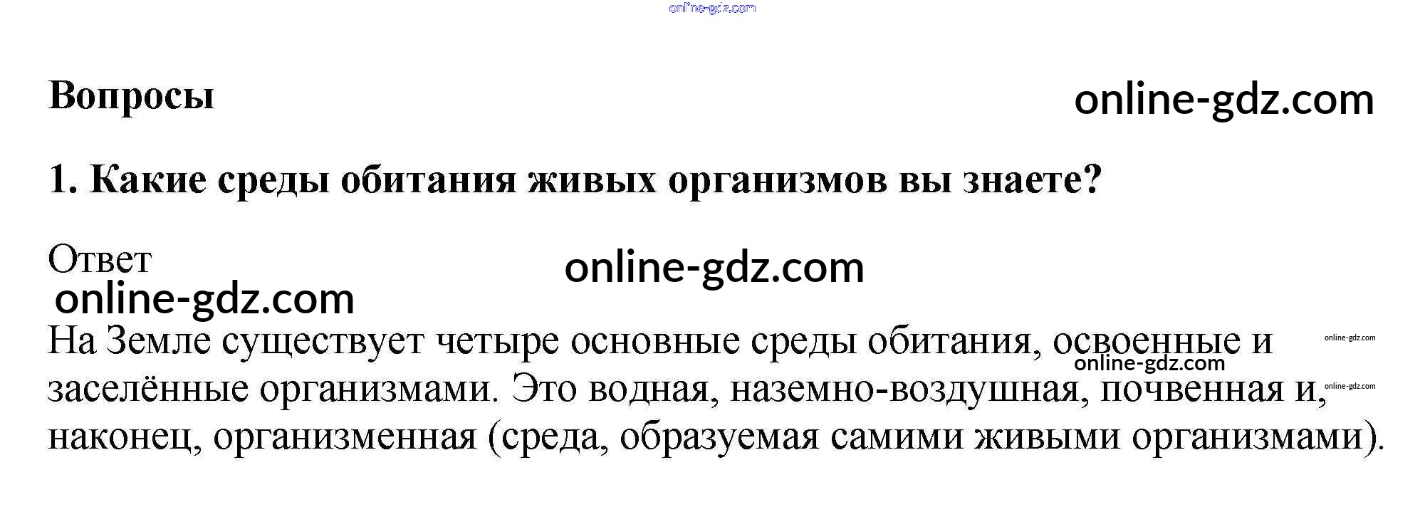 Готовые домашние задания по Биологии за 5, 6 класс Учебник Пасечник, Суматохин Линия жизни 2020 - Вопросы §5. Среды обитания организмов 1