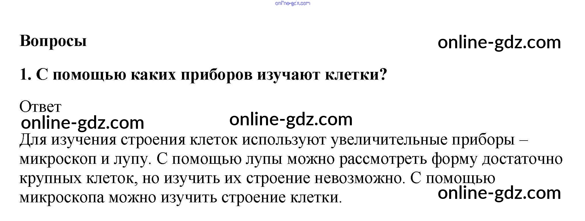 Готовые домашние задания по Биологии за 5, 6 класс Учебник Пасечник, Суматохин Линия жизни 2020 - Вопросы §6. Увеличительные приборы 1