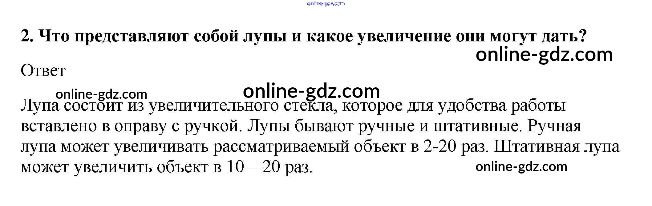 Готовые домашние задания по Биологии за 5, 6 класс Учебник Пасечник, Суматохин Линия жизни 2020 - Вопросы §6. Увеличительные приборы 2