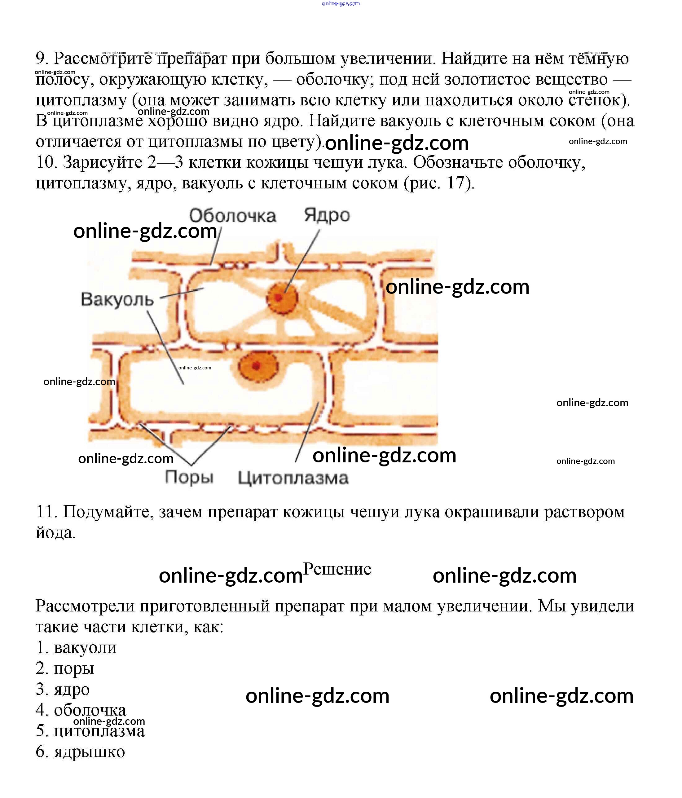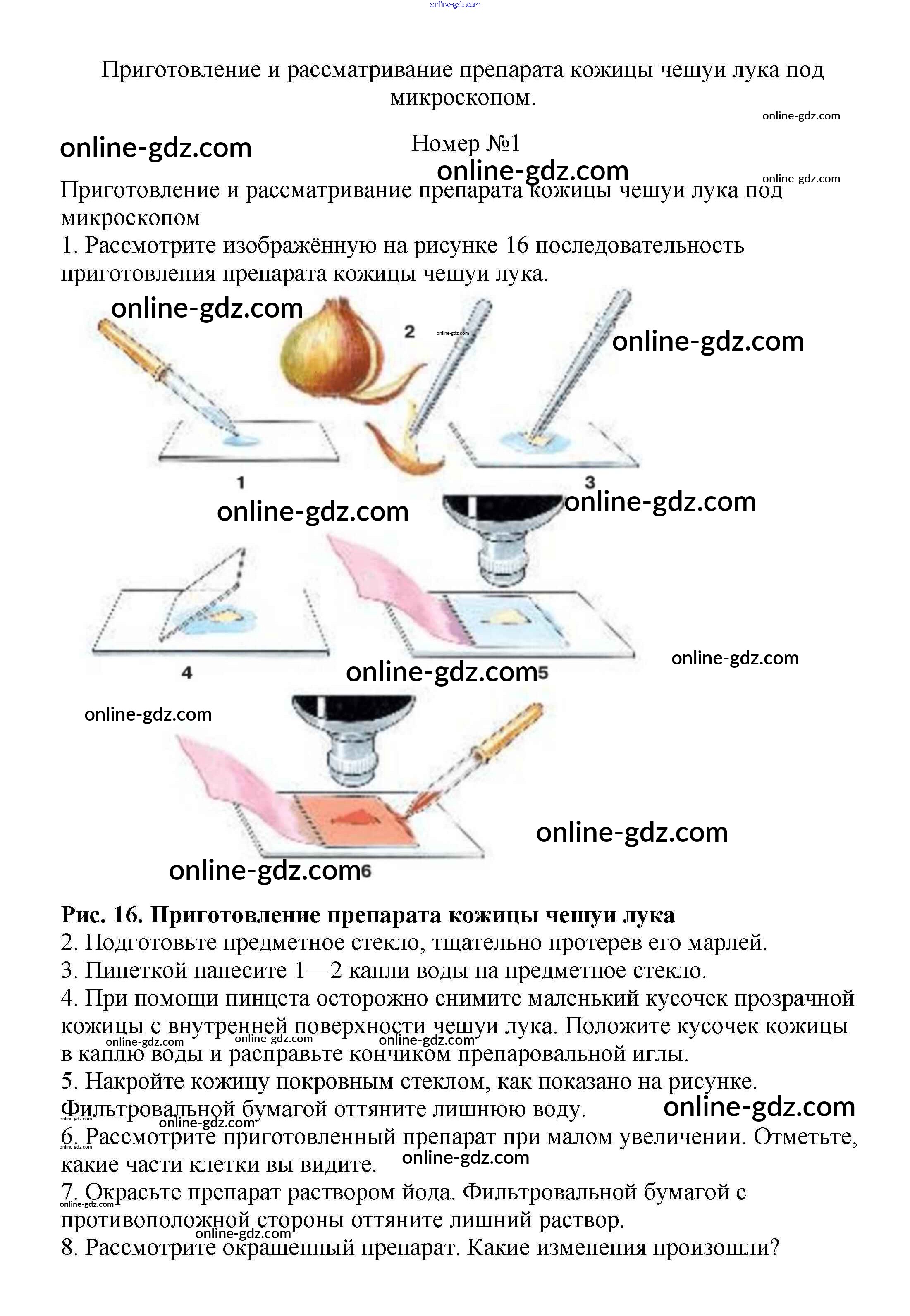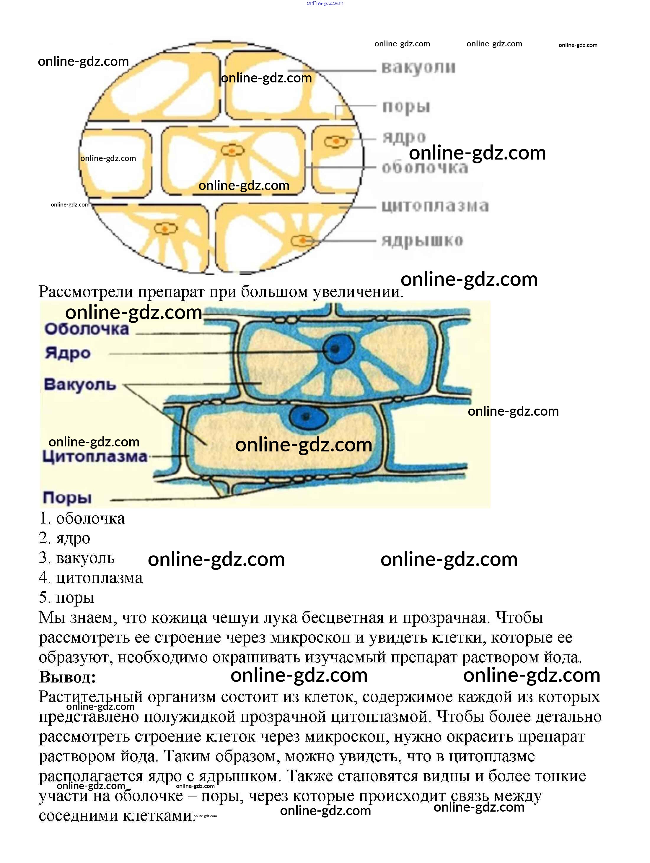Готовые домашние задания по Биологии за 5, 6 класс Учебник Пасечник, Суматохин Линия жизни 2020 - Приготовление и рассматривание препарата кожицы чешуи лука под микроскопом §8. Строение клетки 1