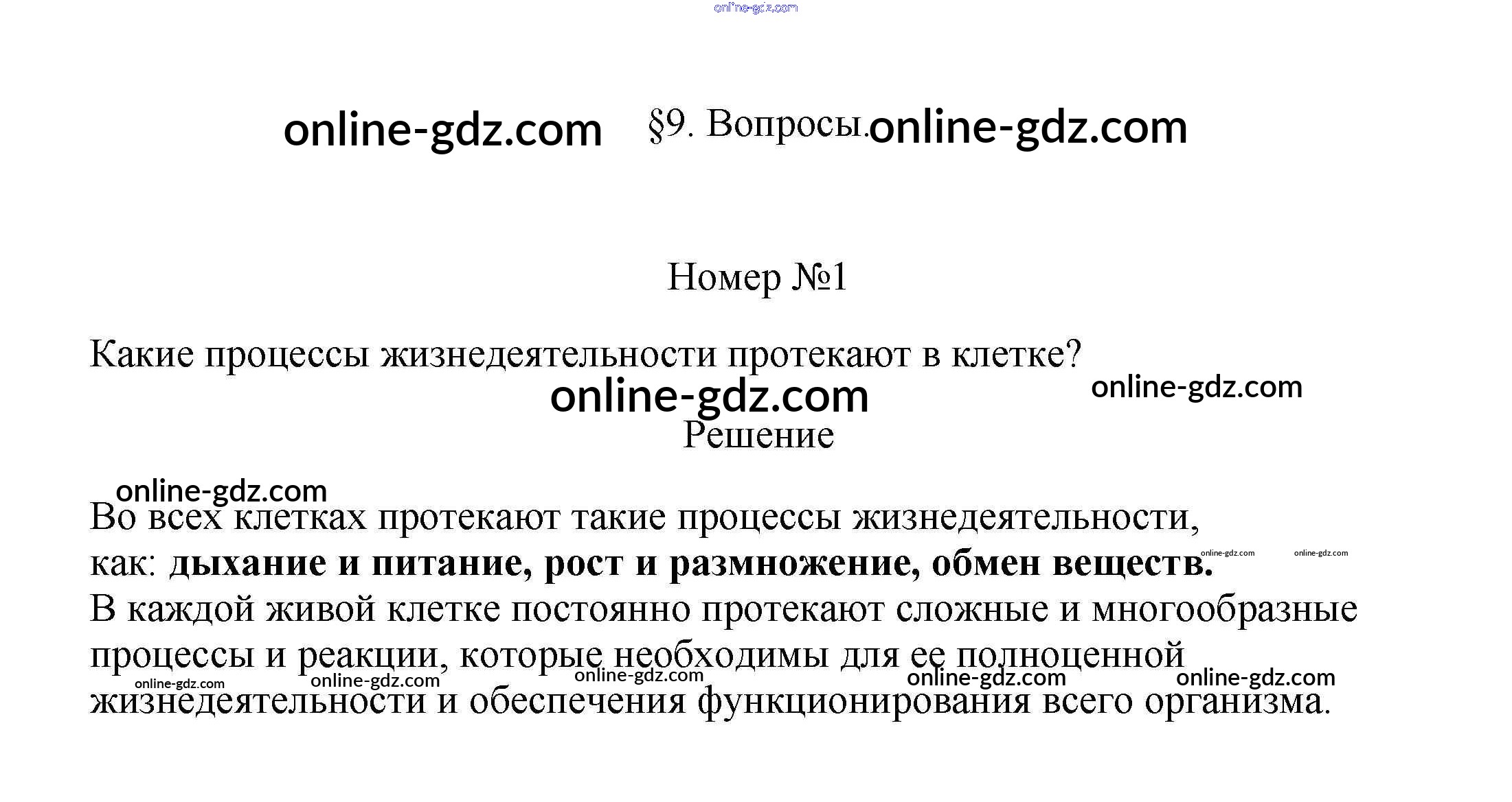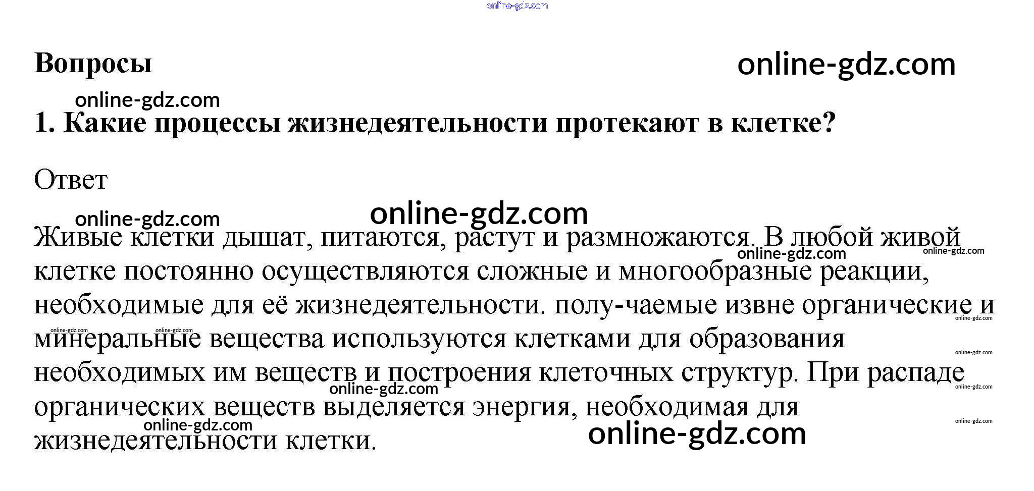 Готовые домашние задания по Биологии за 5, 6 класс Учебник Пасечник, Суматохин Линия жизни 2020 - Вопросы §9. Жизнедеятельность клетки 1