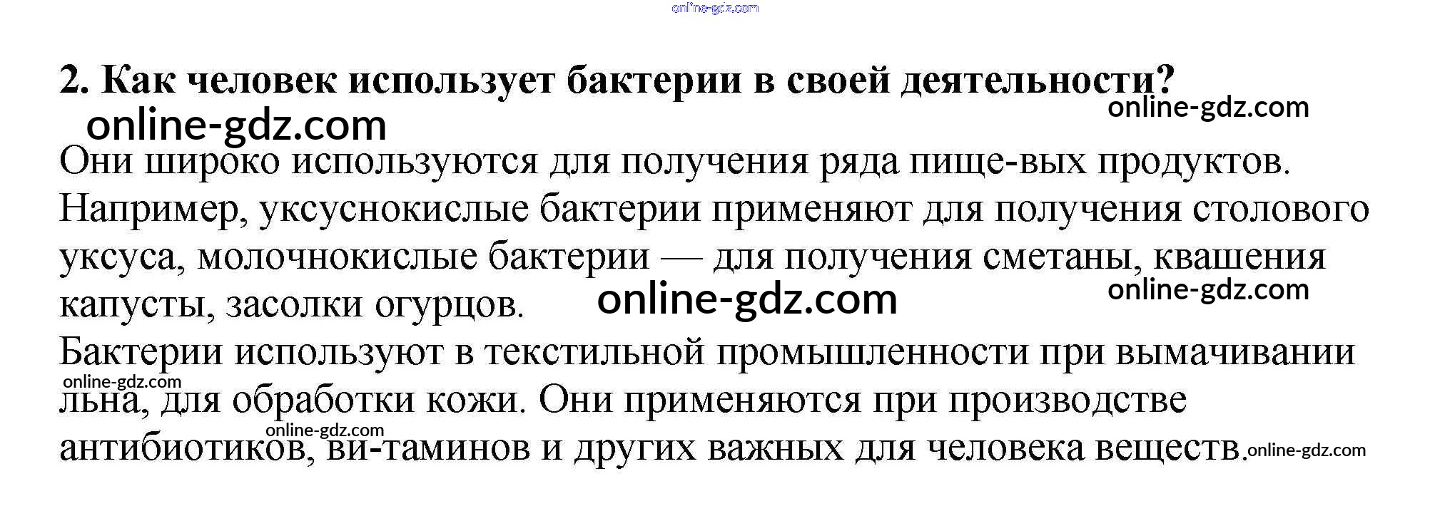 Готовые домашние задания по Биологии за 5, 6 класс Учебник Пасечник, Суматохин Линия жизни 2020 - Вопросы §11. Роль бактерий в природе и жизни человека 2