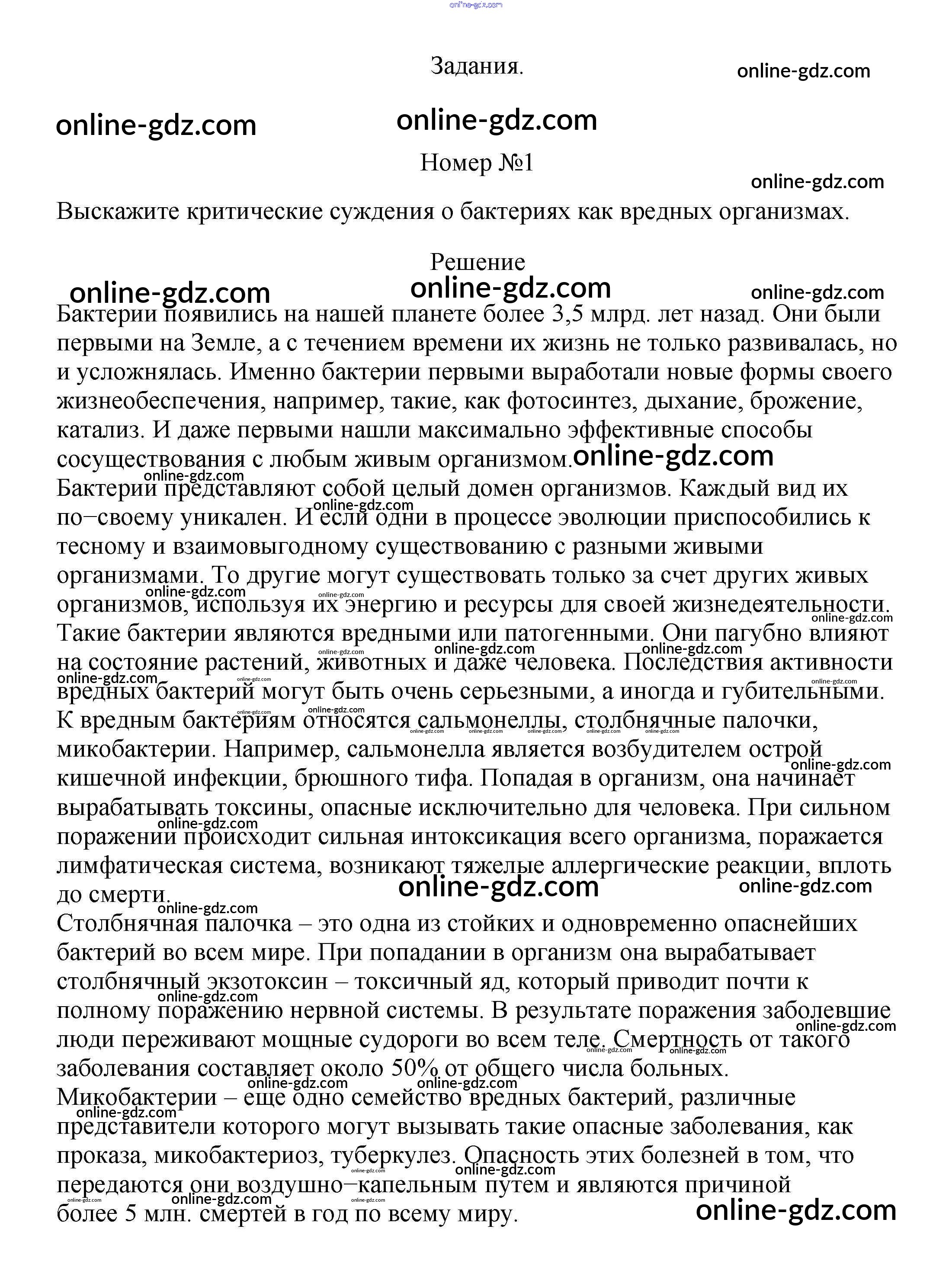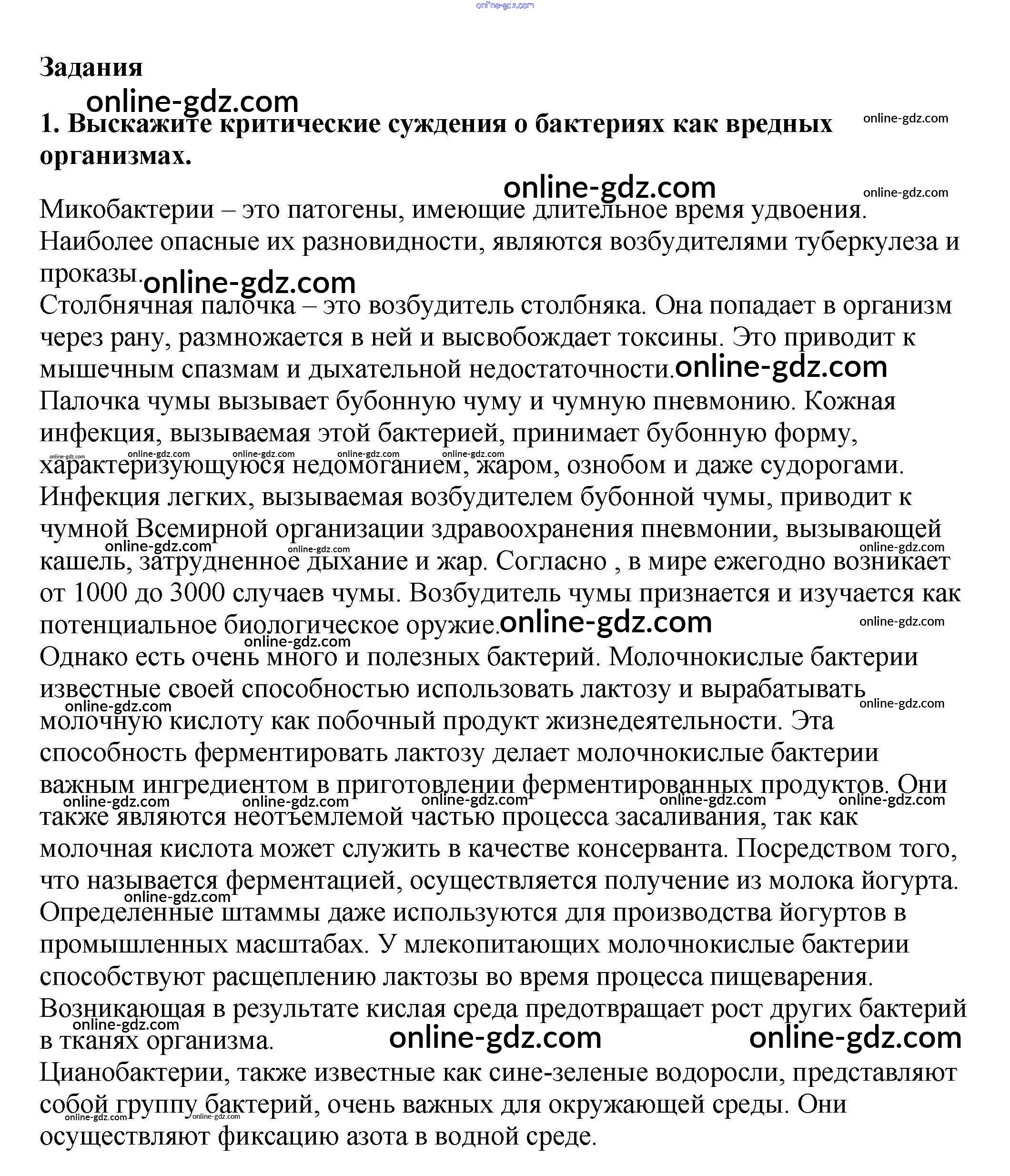 Готовые домашние задания по Биологии за 5, 6 класс Учебник Пасечник, Суматохин Линия жизни 2020 - Задания §11. Роль бактерий в природе и жизни человека 1