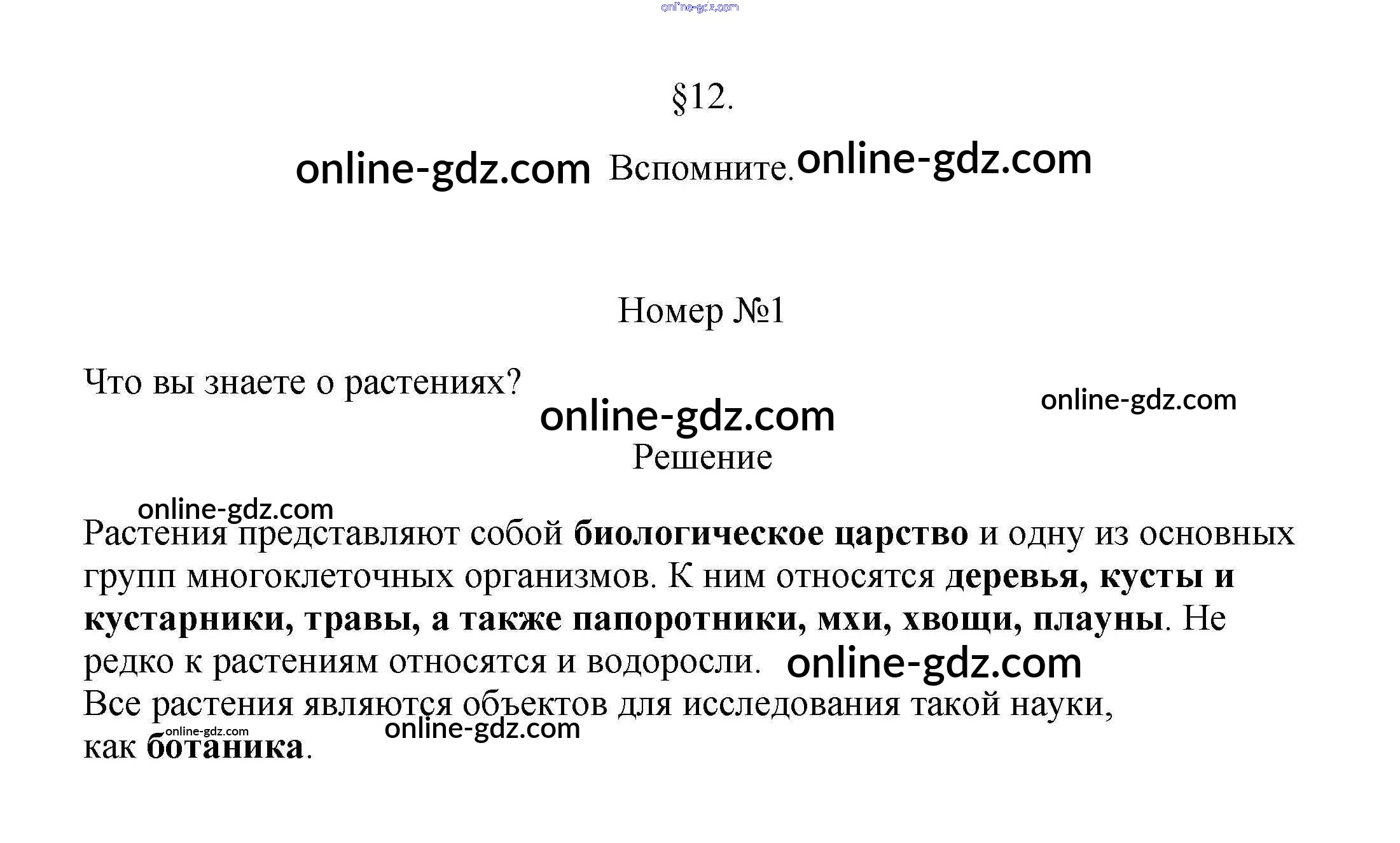 Готовые домашние задания по Биологии за 5, 6 класс Учебник Пасечник, Суматохин Линия жизни 2020 - Вспомните §12. Характеристика царства Растения 1