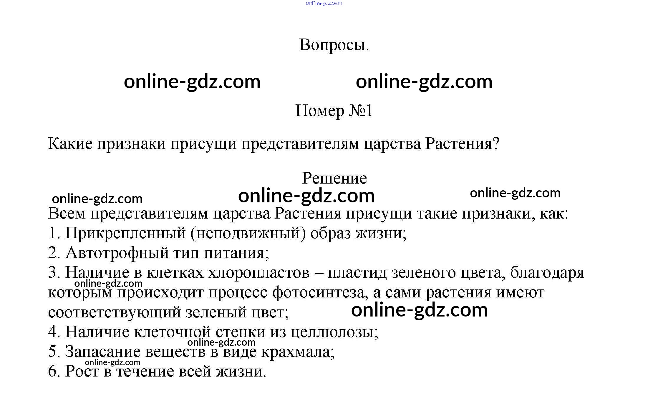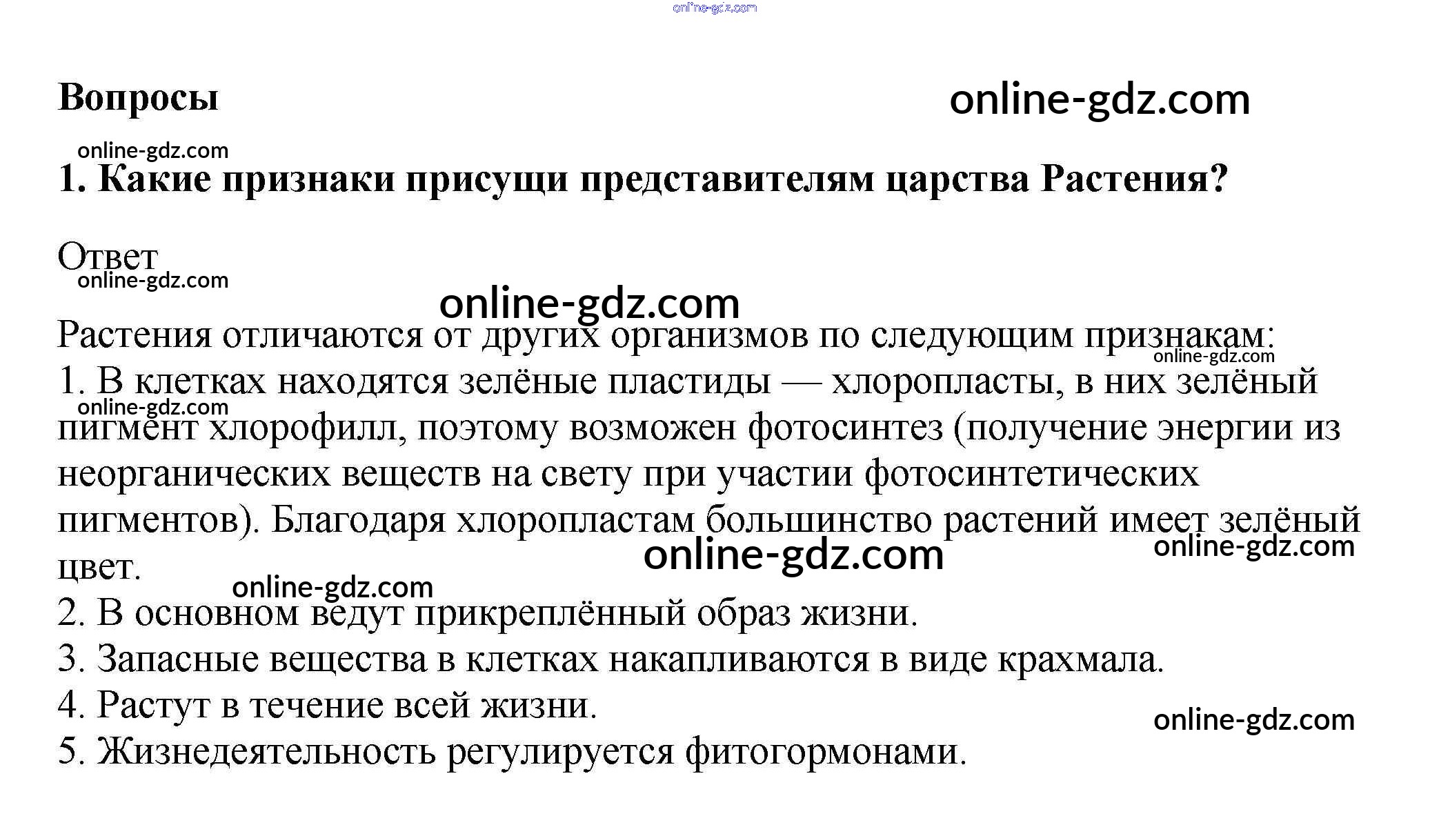 Готовые домашние задания по Биологии за 5, 6 класс Учебник Пасечник, Суматохин Линия жизни 2020 - Вопросы §12. Характеристика царства Растения 1