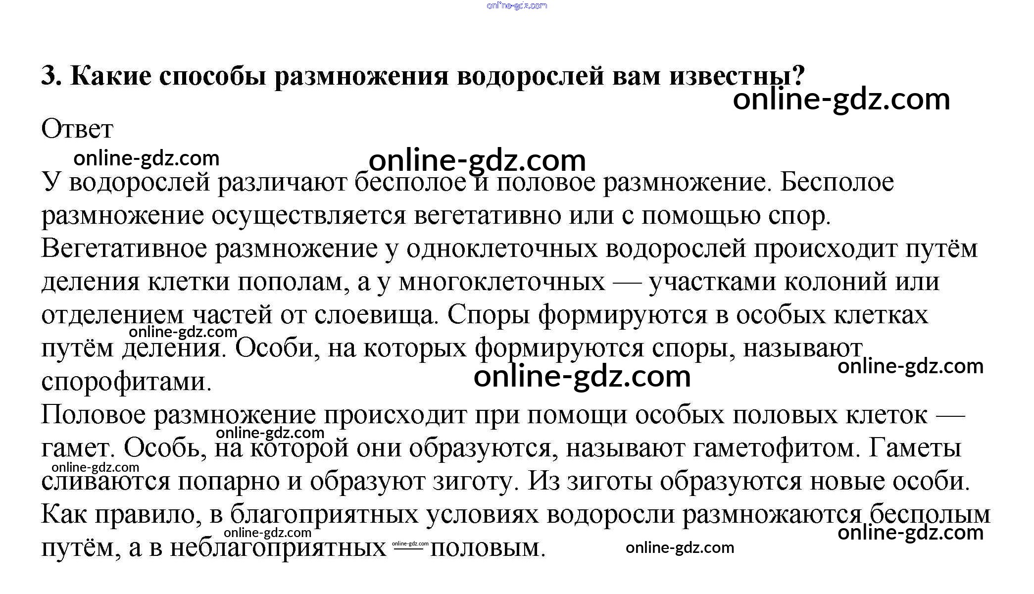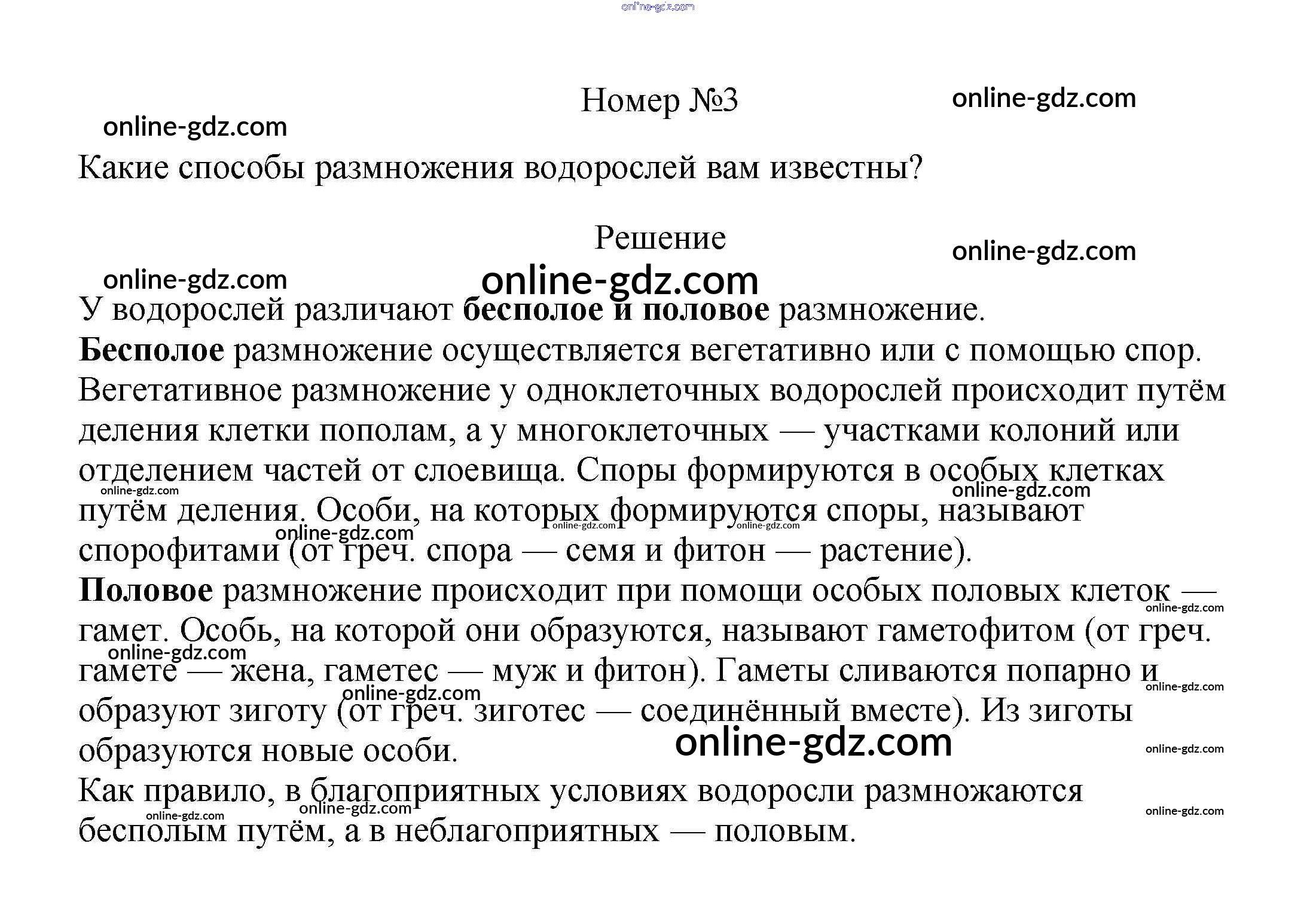 Готовые домашние задания по Биологии за 5, 6 класс Учебник Пасечник, Суматохин Линия жизни 2020 - Вопросы §13. Водоросли 3