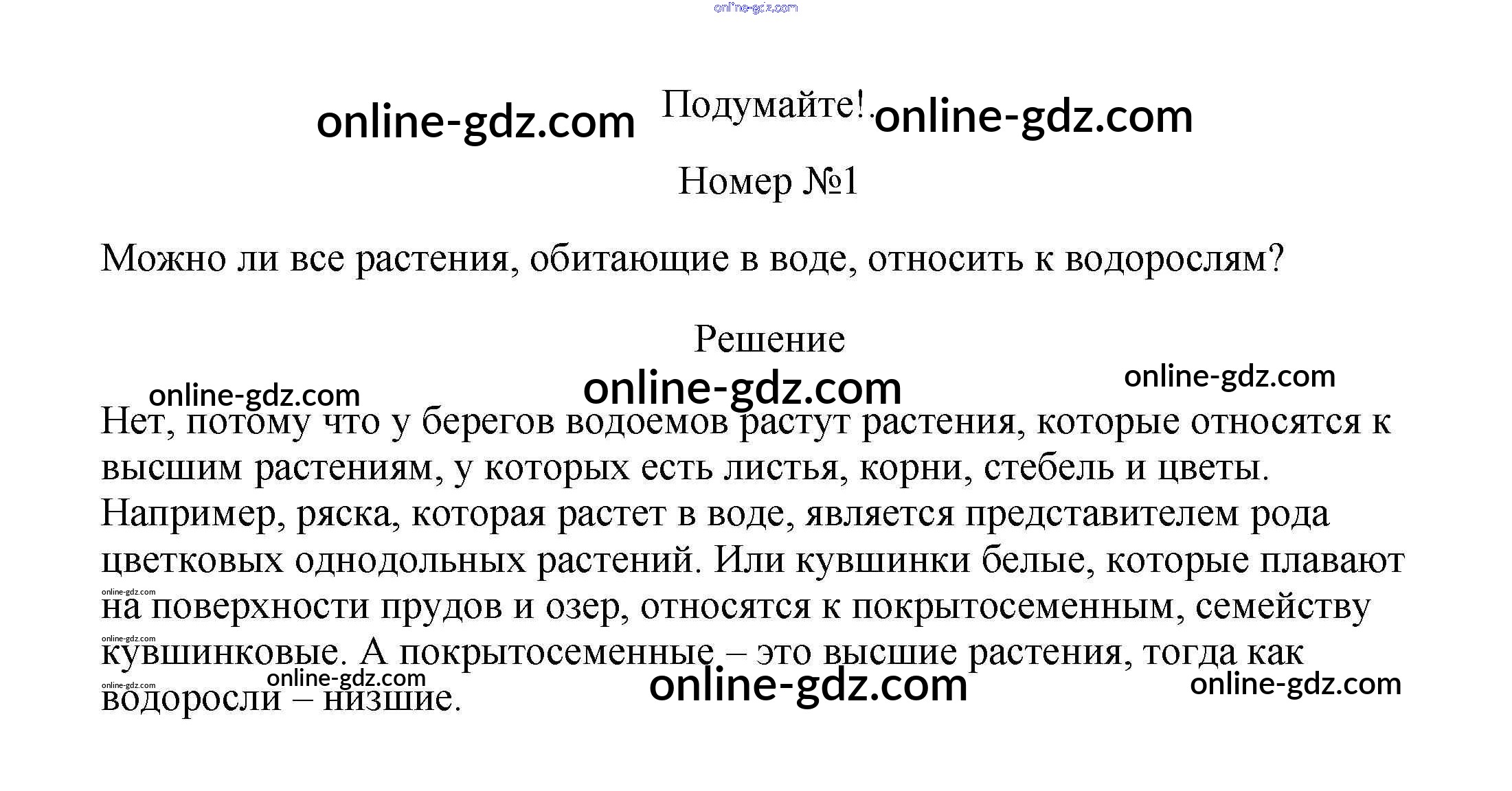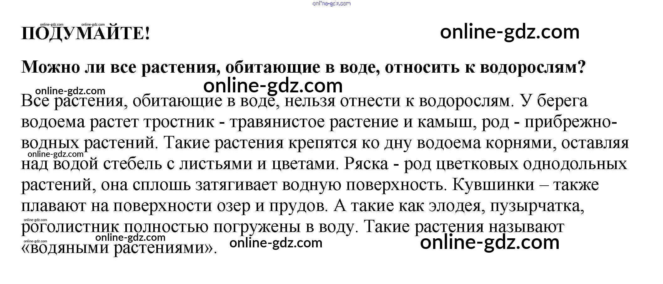 Готовые домашние задания по Биологии за 5, 6 класс Учебник Пасечник, Суматохин Линия жизни 2020 - Подумайте §13. Водоросли 1