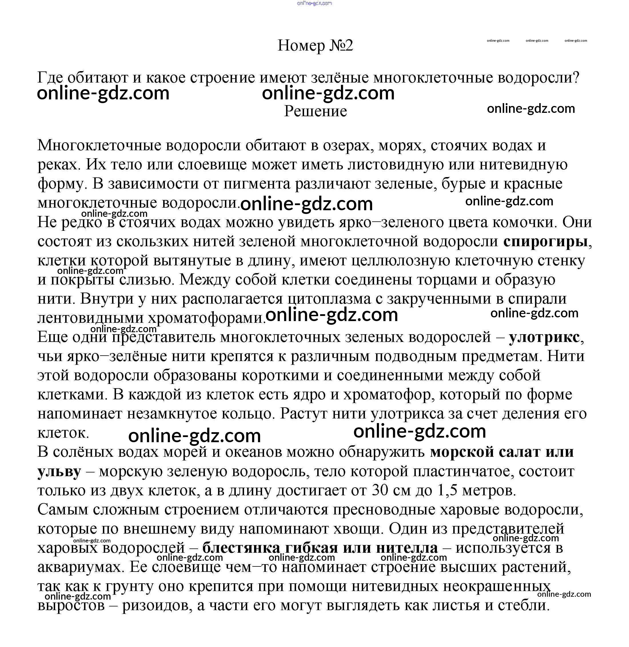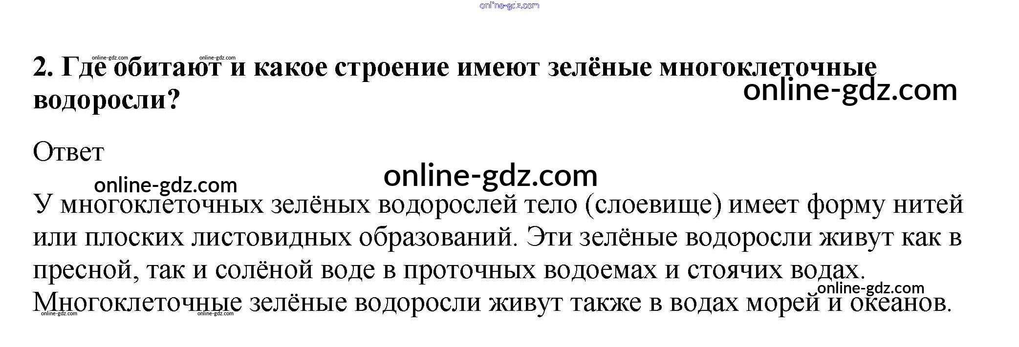 Готовые домашние задания по Биологии за 5, 6 класс Учебник Пасечник, Суматохин Линия жизни 2020 - Вопросы §14. Многообразие водорослей 2