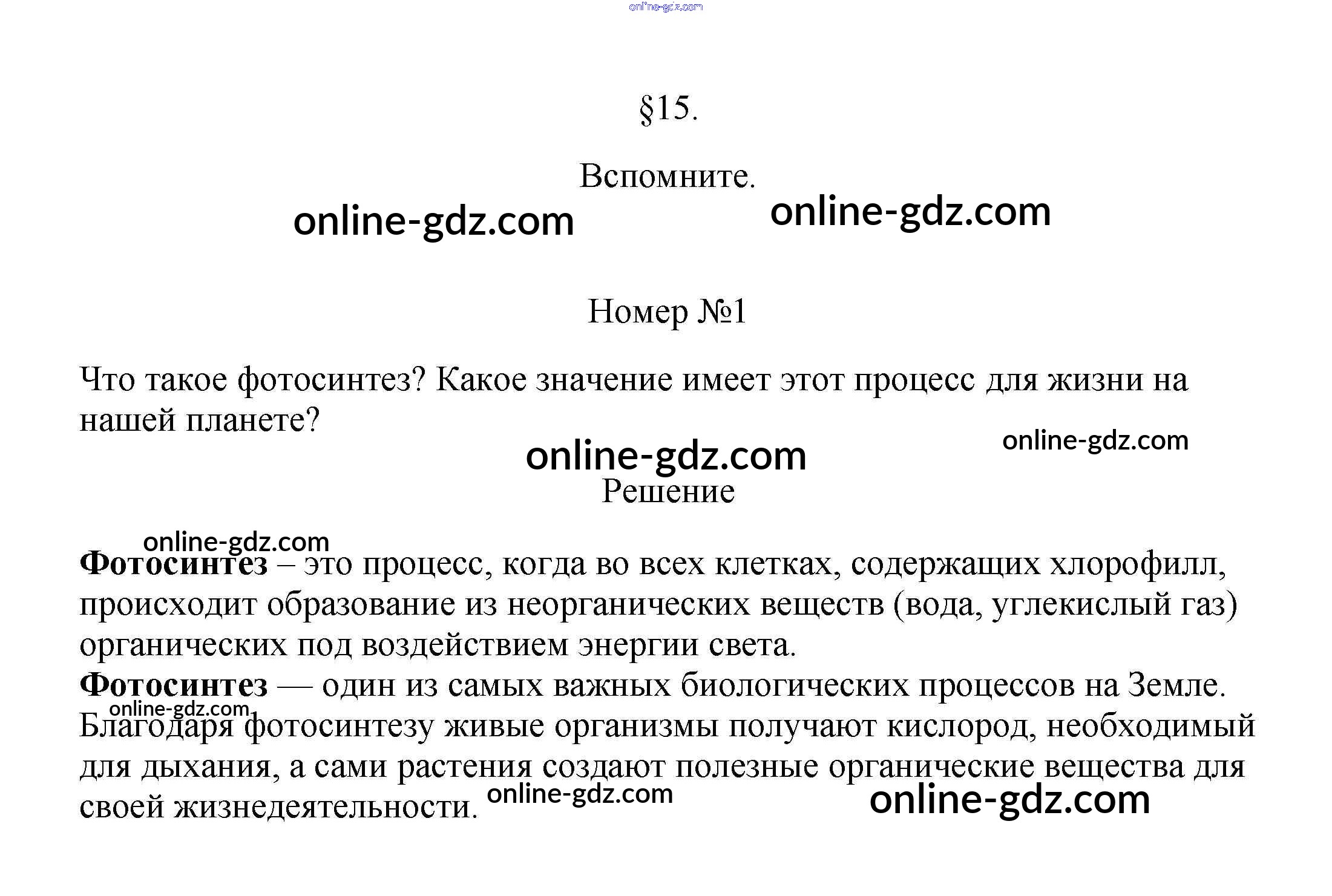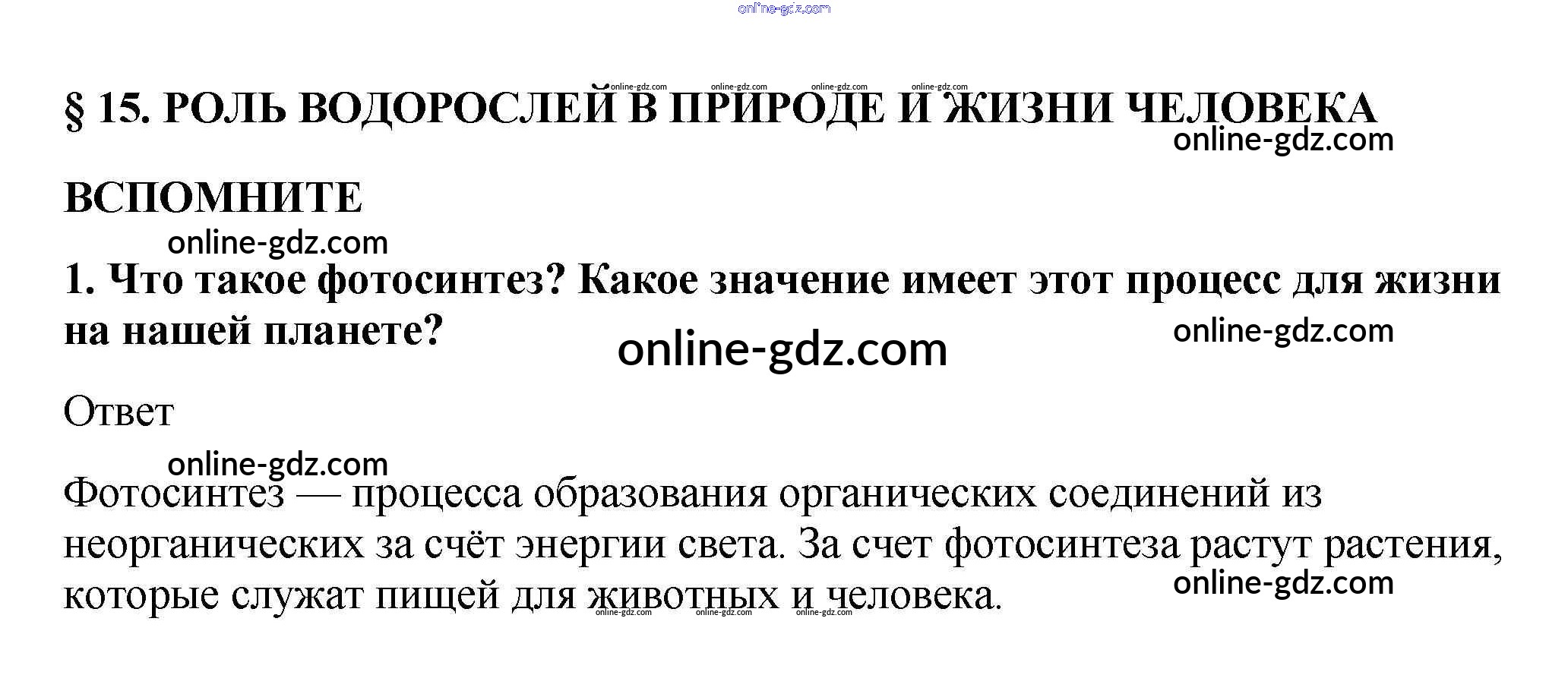 Готовые домашние задания по Биологии за 5, 6 класс Учебник Пасечник, Суматохин Линия жизни 2020 - Вспомните §15. Роль водорослей в природе и жизни человека 1