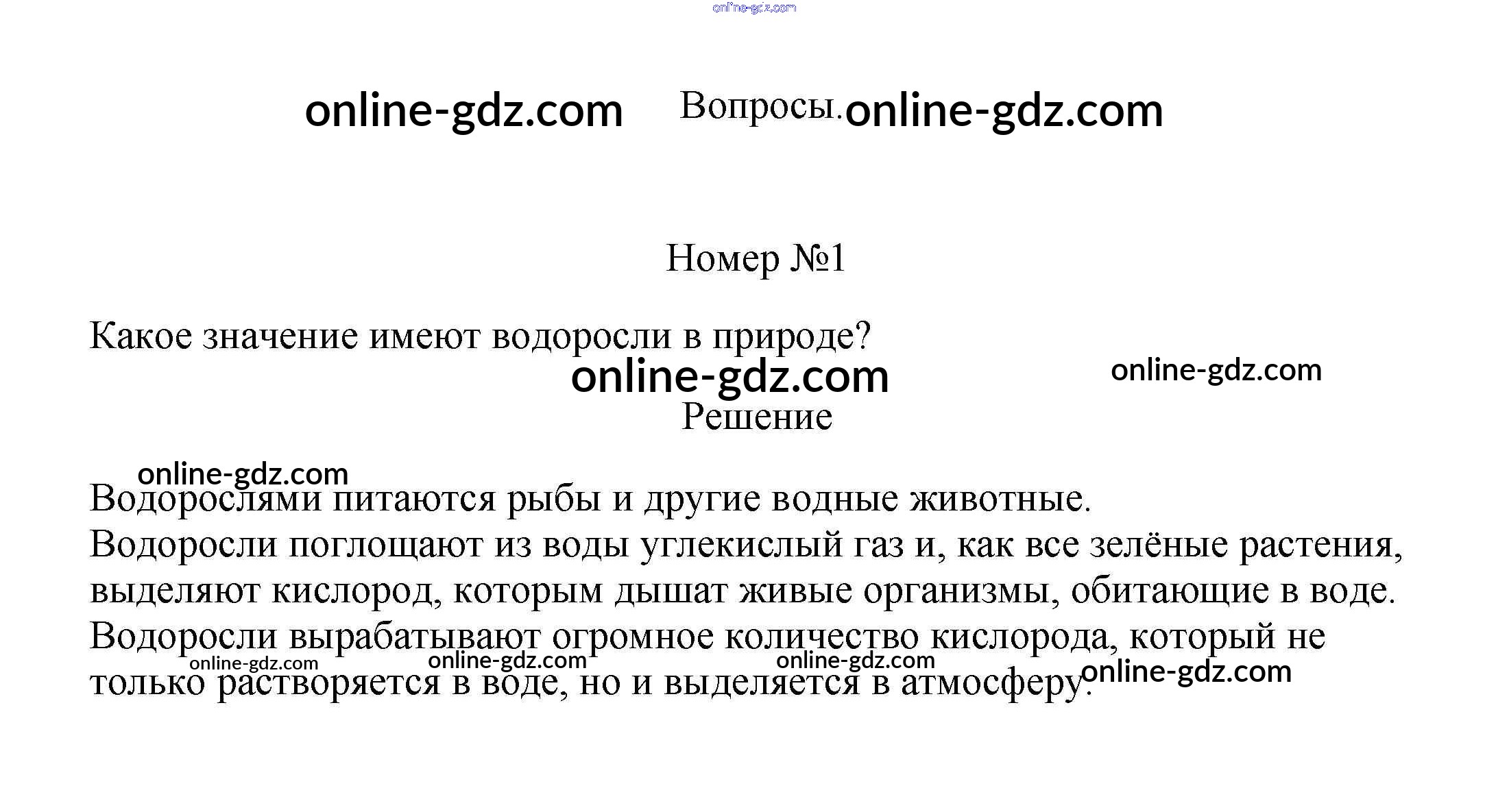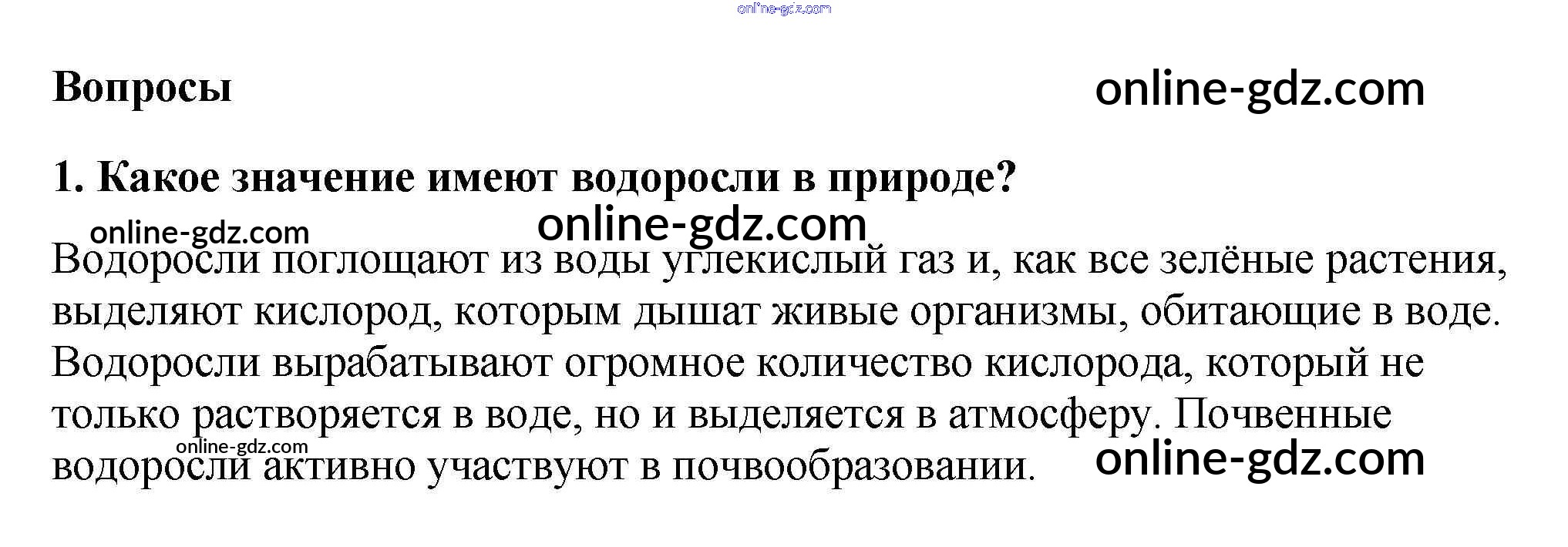 Готовые домашние задания по Биологии за 5, 6 класс Учебник Пасечник, Суматохин Линия жизни 2020 - Вопросы §15. Роль водорослей в природе и жизни человека 1