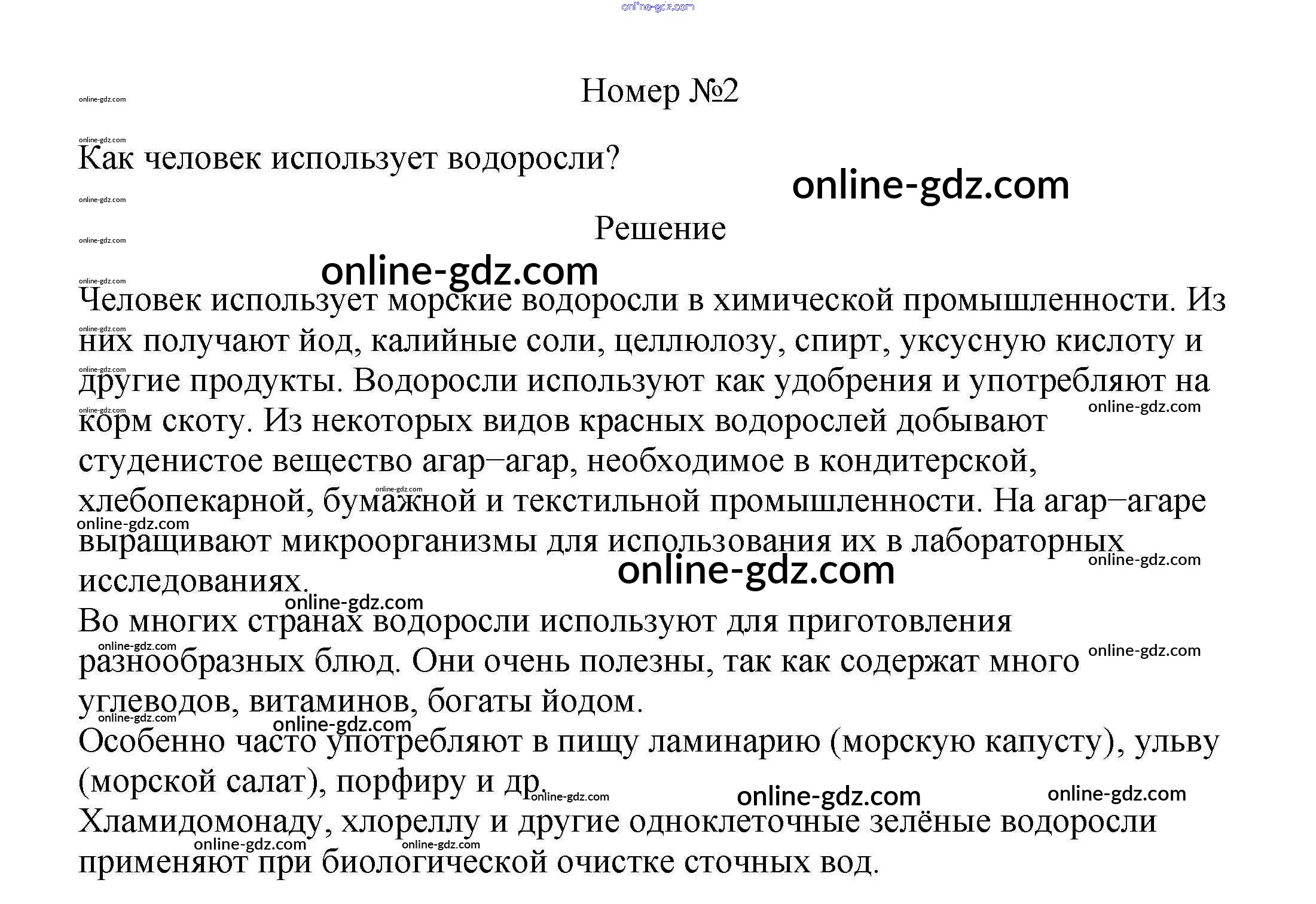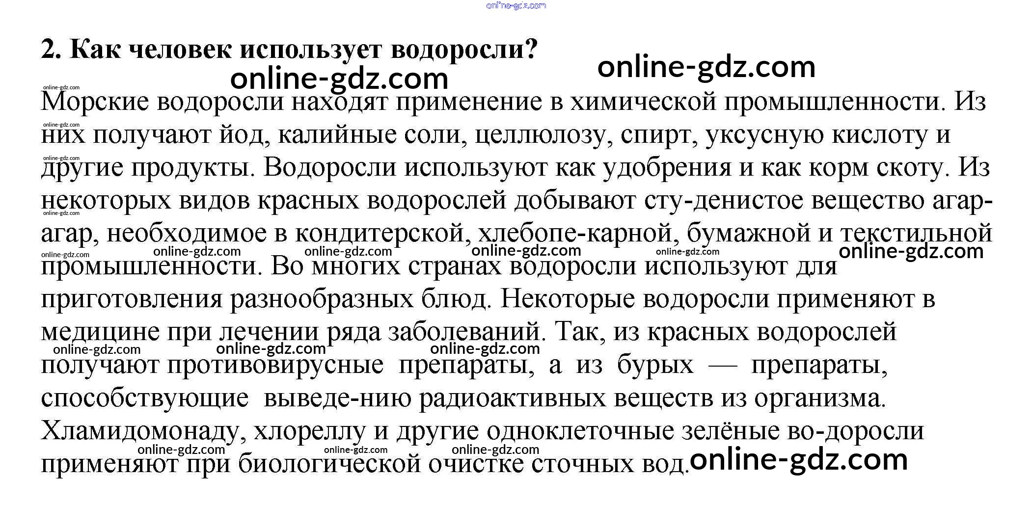 Готовые домашние задания по Биологии за 5, 6 класс Учебник Пасечник, Суматохин Линия жизни 2020 - Вопросы §15. Роль водорослей в природе и жизни человека 2