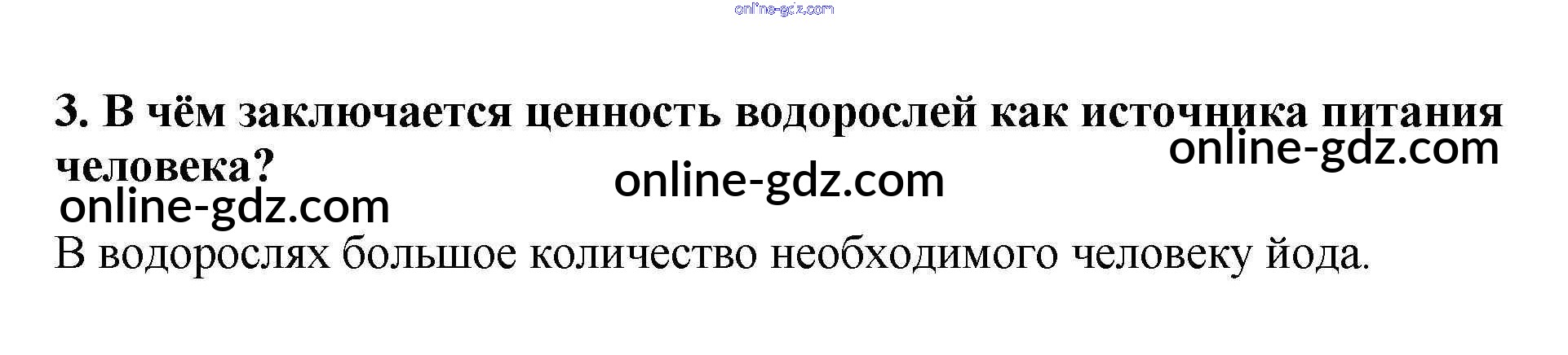 Готовые домашние задания по Биологии за 5, 6 класс Учебник Пасечник, Суматохин Линия жизни 2020 - Вопросы §15. Роль водорослей в природе и жизни человека 3