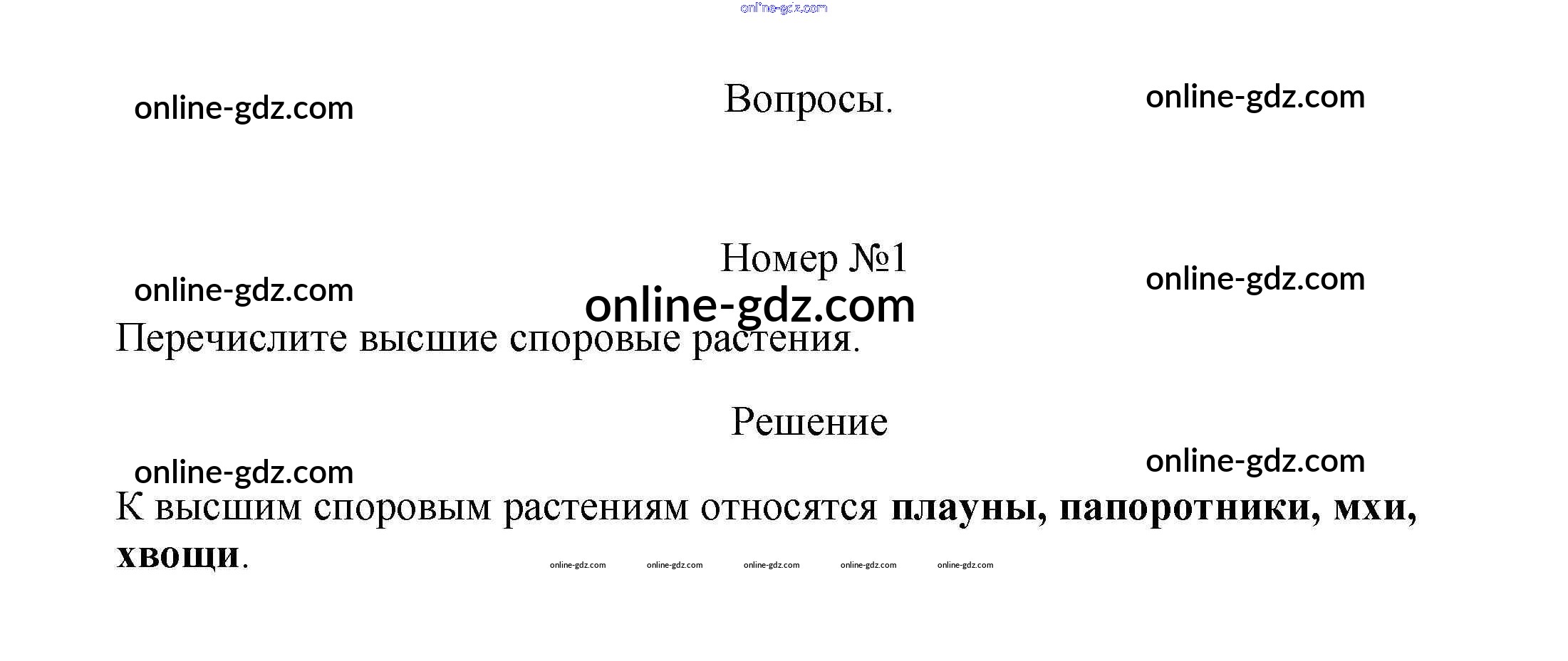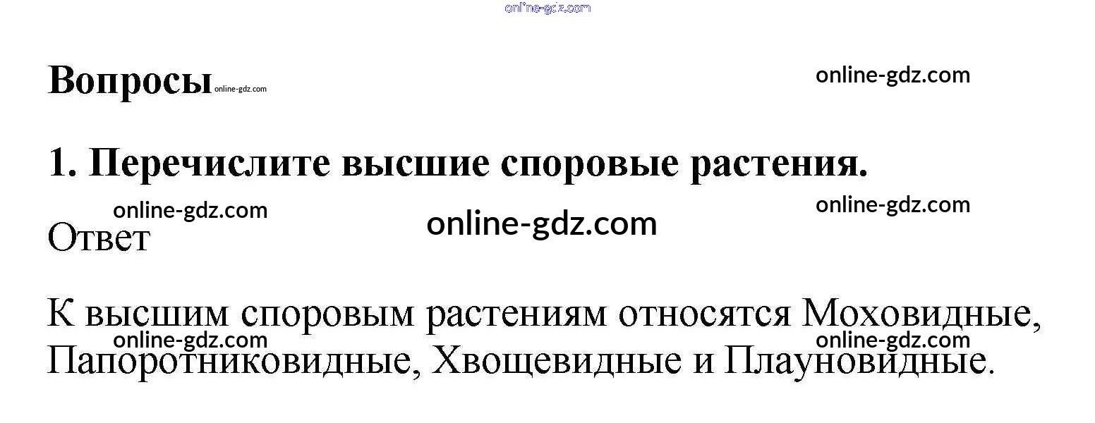 Готовые домашние задания по Биологии за 5, 6 класс Учебник Пасечник, Суматохин Линия жизни 2020 - Вопросы §16. Высшие споровые растения 1