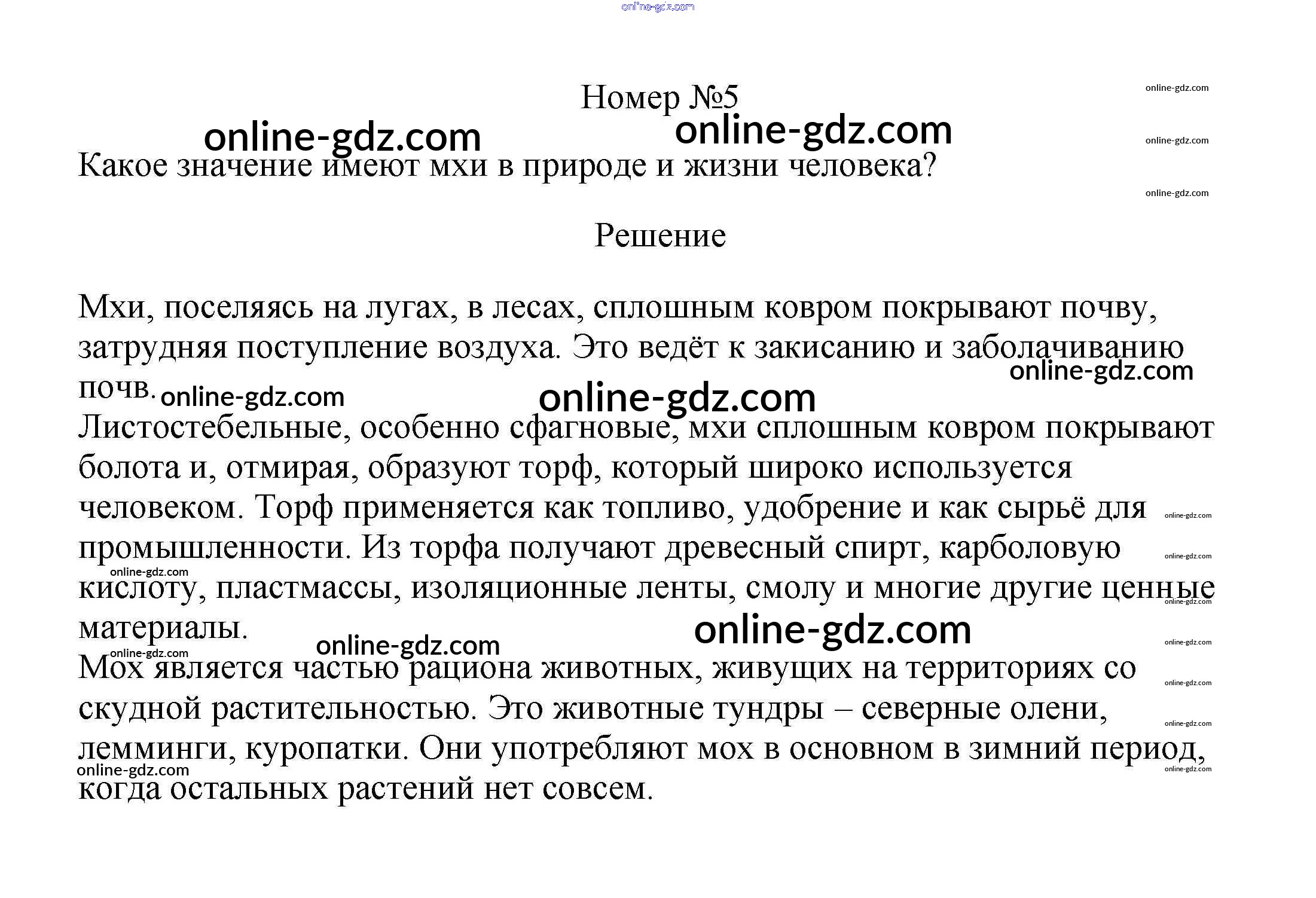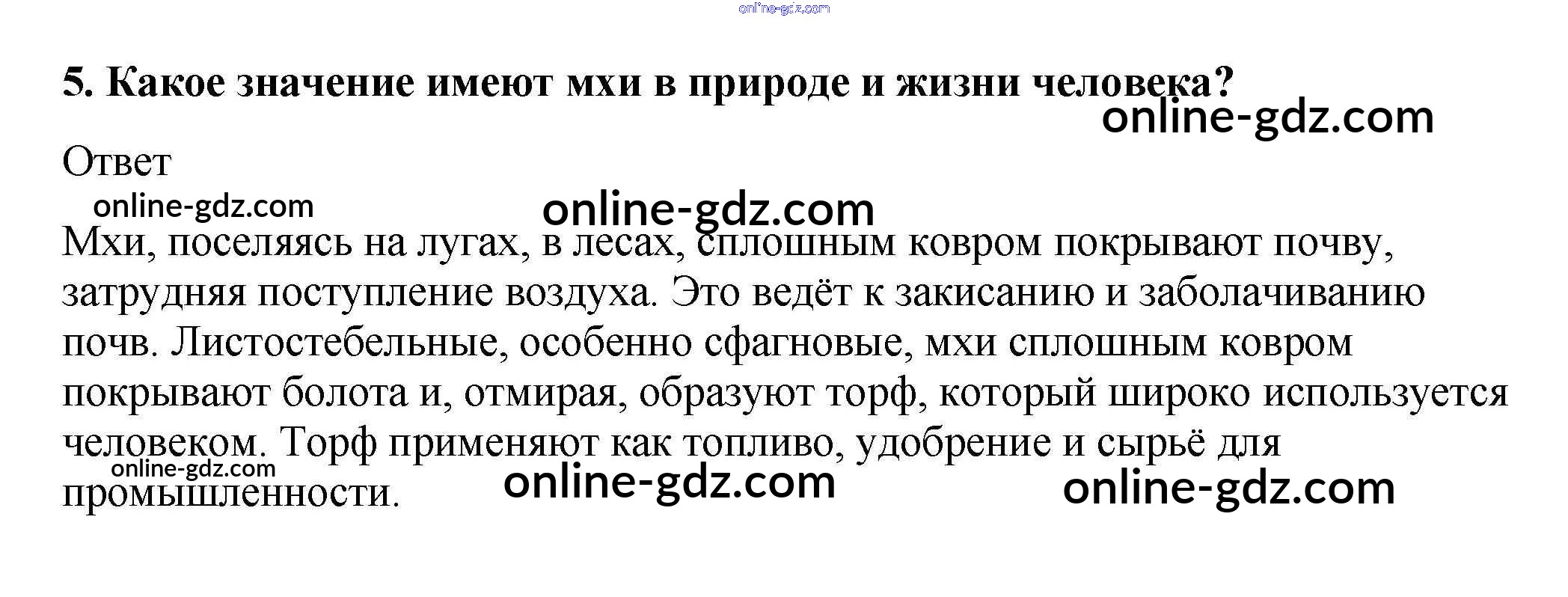 Готовые домашние задания по Биологии за 5, 6 класс Учебник Пасечник, Суматохин Линия жизни 2020 - Вопросы §17. Моховидные 5