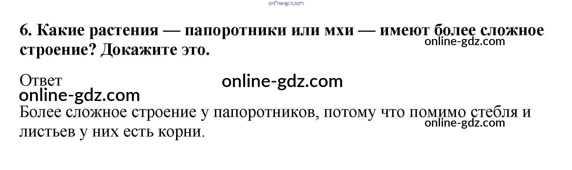 Готовые домашние задания по Биологии за 5, 6 класс Учебник Пасечник, Суматохин Линия жизни 2020 - Вопросы §18. Папоротниковидные. Плауновидные. Хвощевидные 6