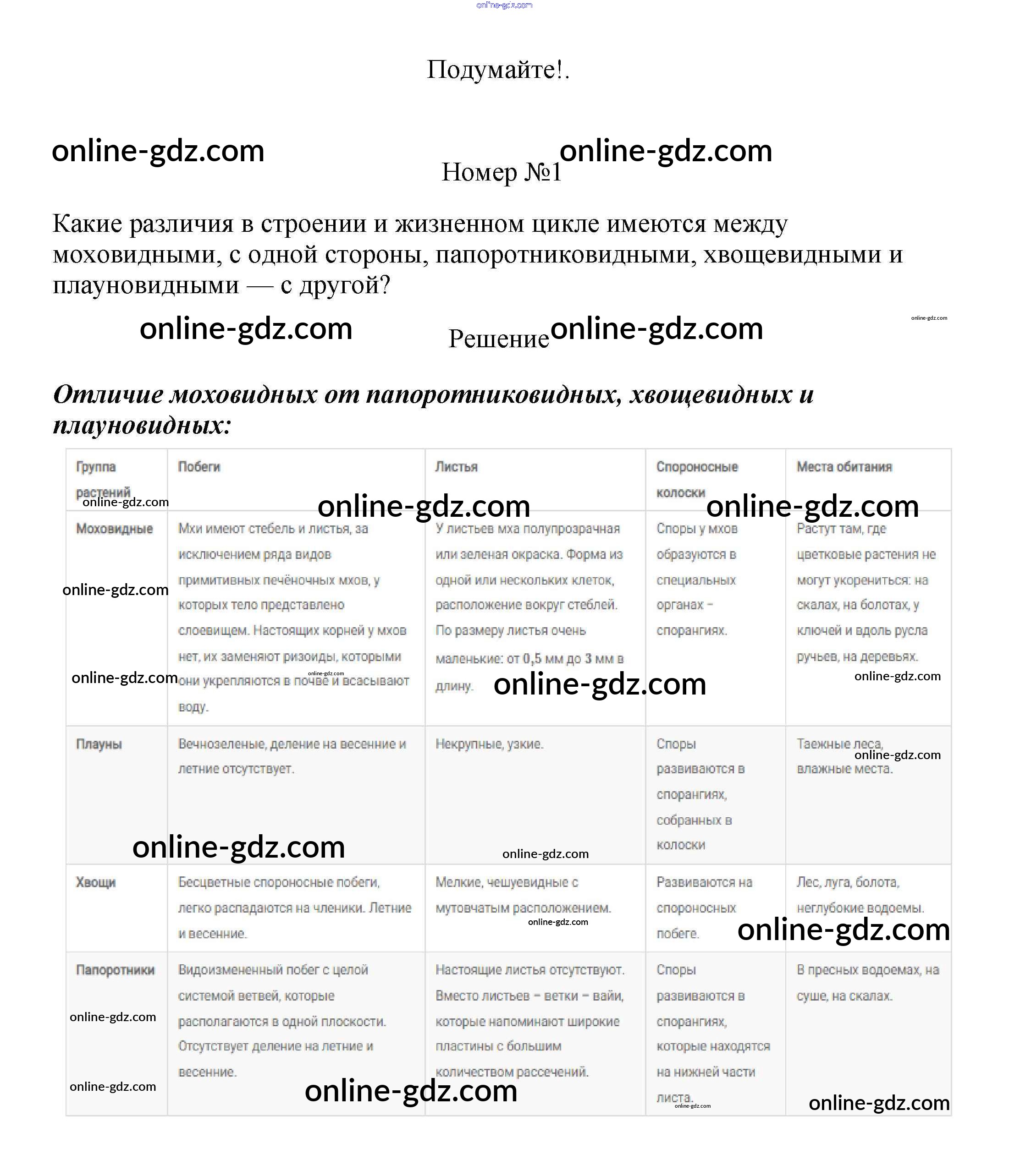 Готовые домашние задания по Биологии за 5, 6 класс Учебник Пасечник, Суматохин Линия жизни 2020 - Подумайте §18. Папоротниковидные. Плауновидные. Хвощевидные 1