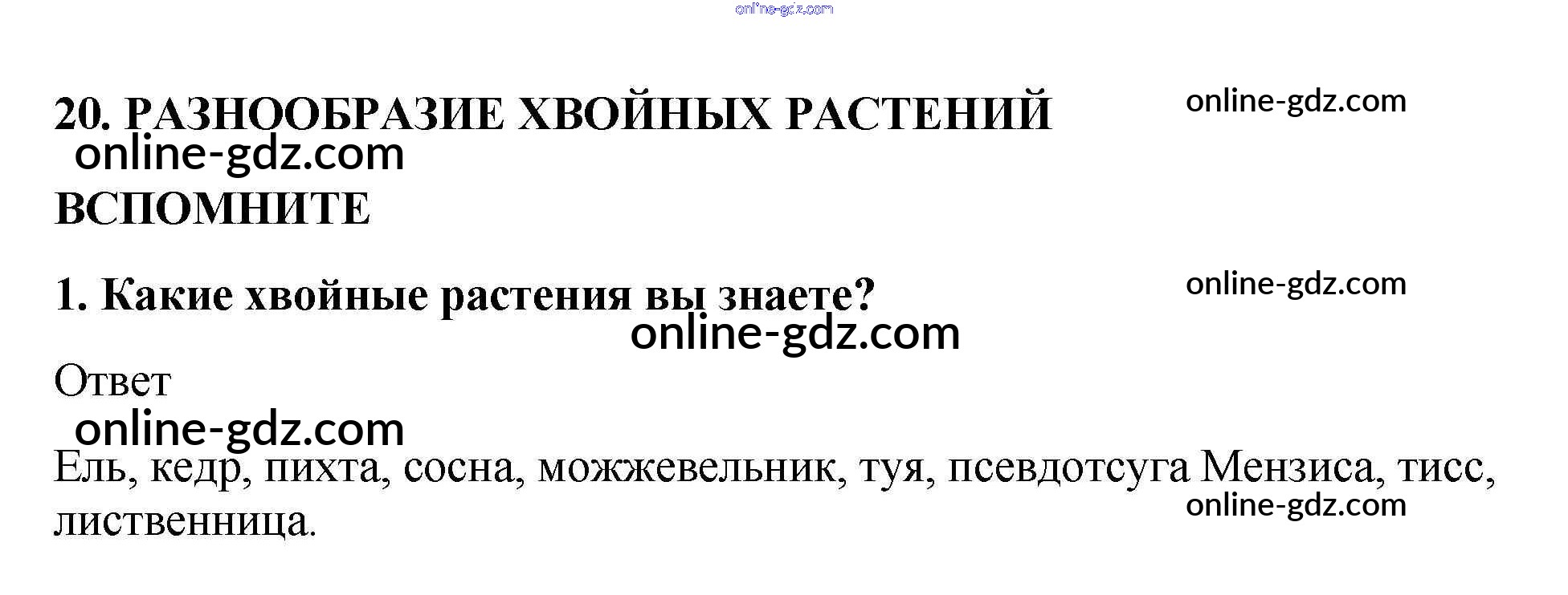 Готовые домашние задания по Биологии за 5, 6 класс Учебник Пасечник, Суматохин Линия жизни 2020 - Вспомните §20. Разнообразие хвойных растений 1